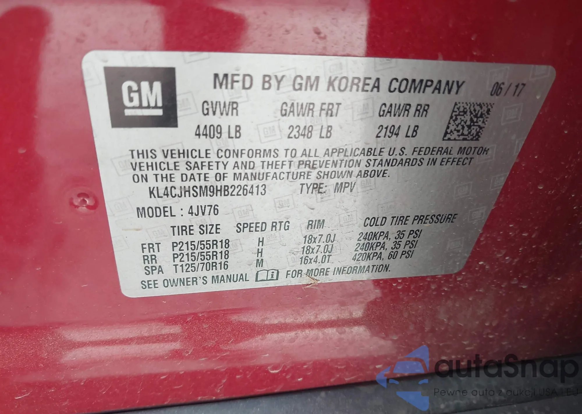 • VIN KL4CJHSM9HB226413