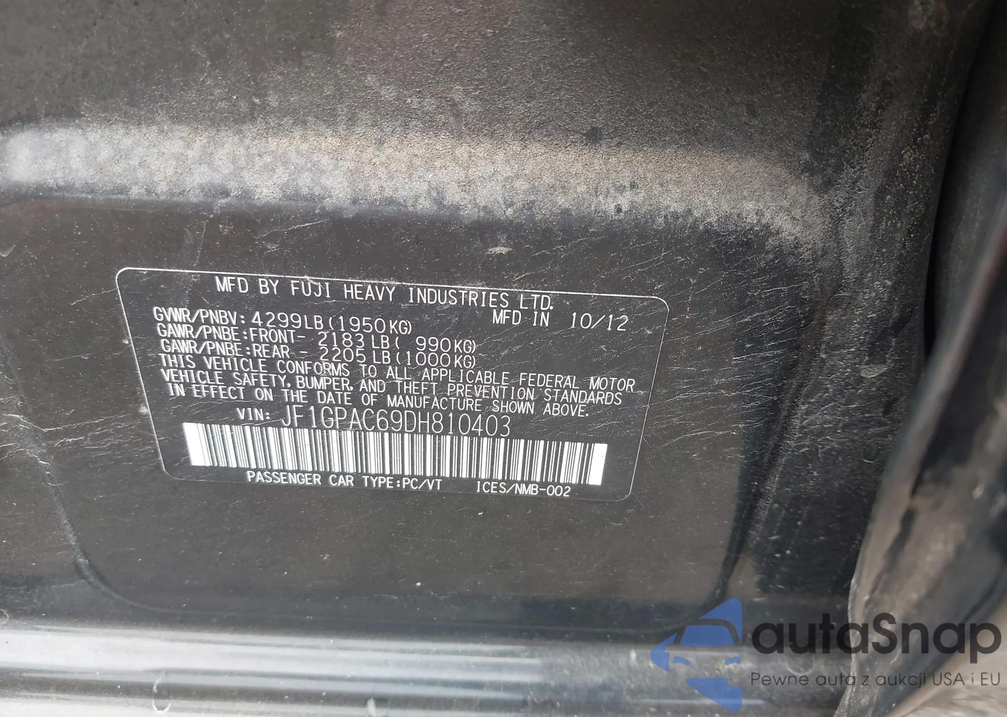• VIN JF1GPAC69DH810403