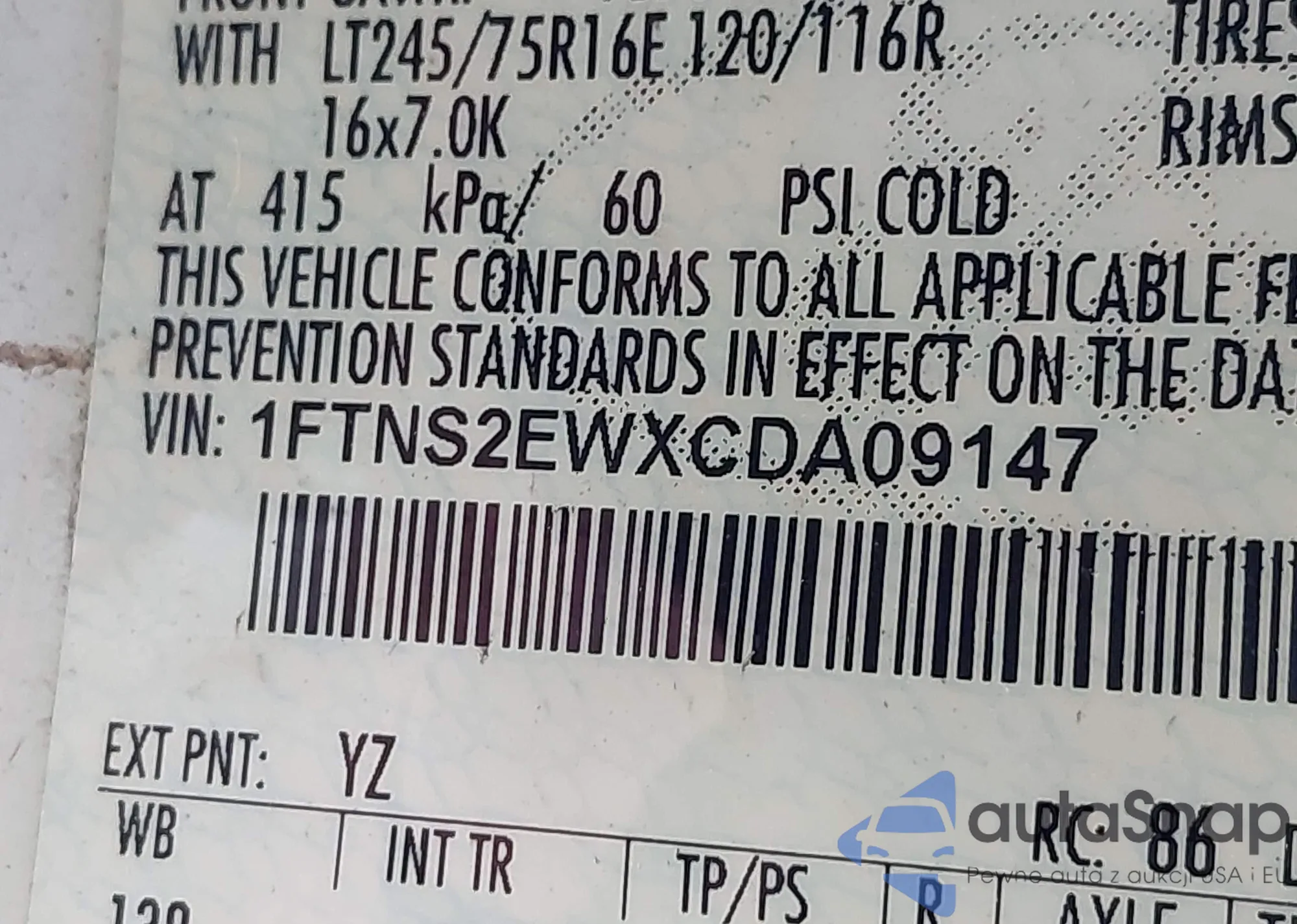 • VIN 1FTNS2EWXCDA09147