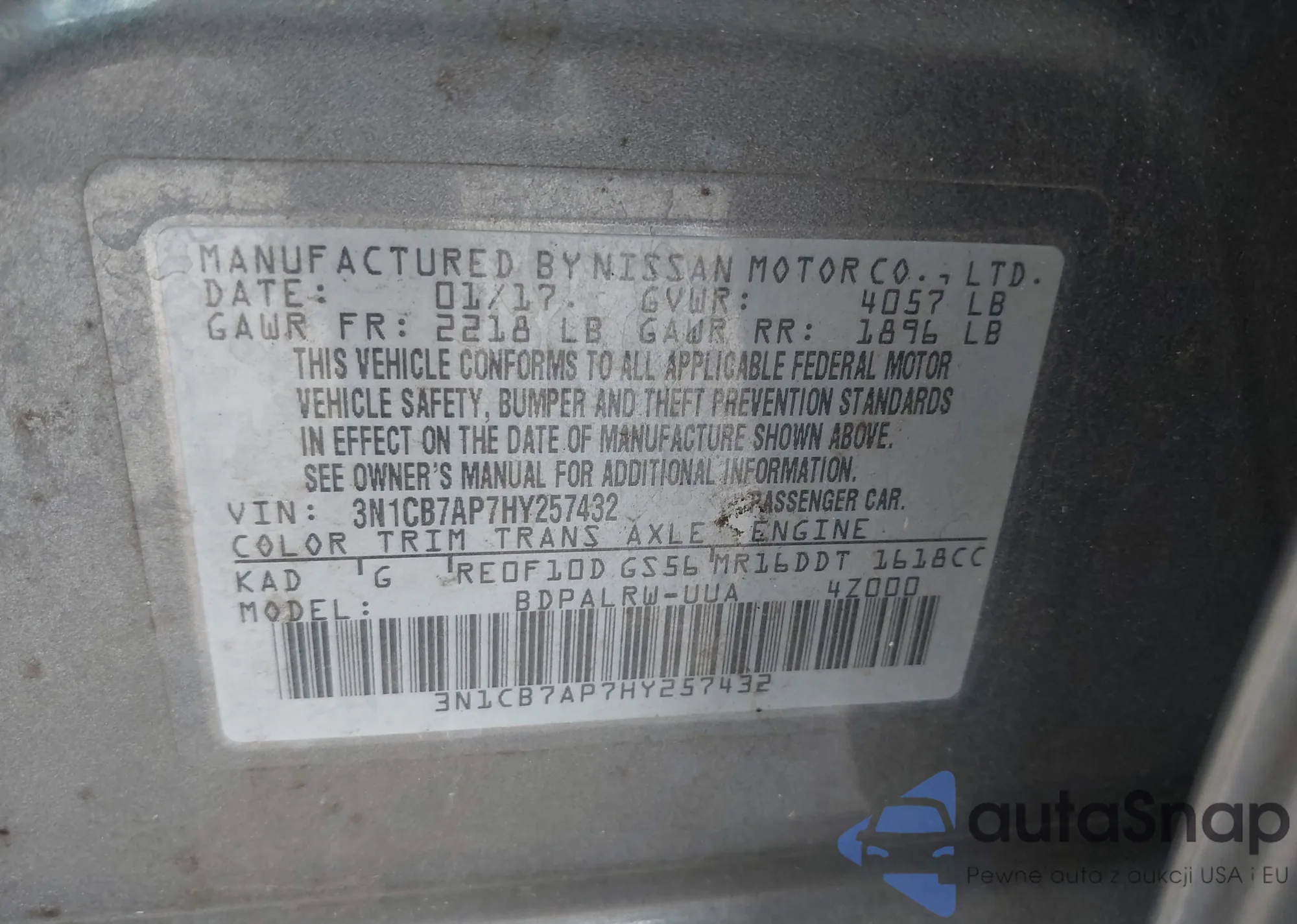 LOT: 42364136 VIN: WAUWGAFC6EN106005