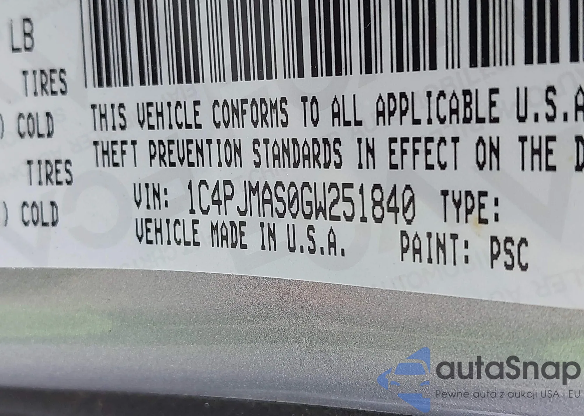 • VIN 1C4PJMAS0GW251840