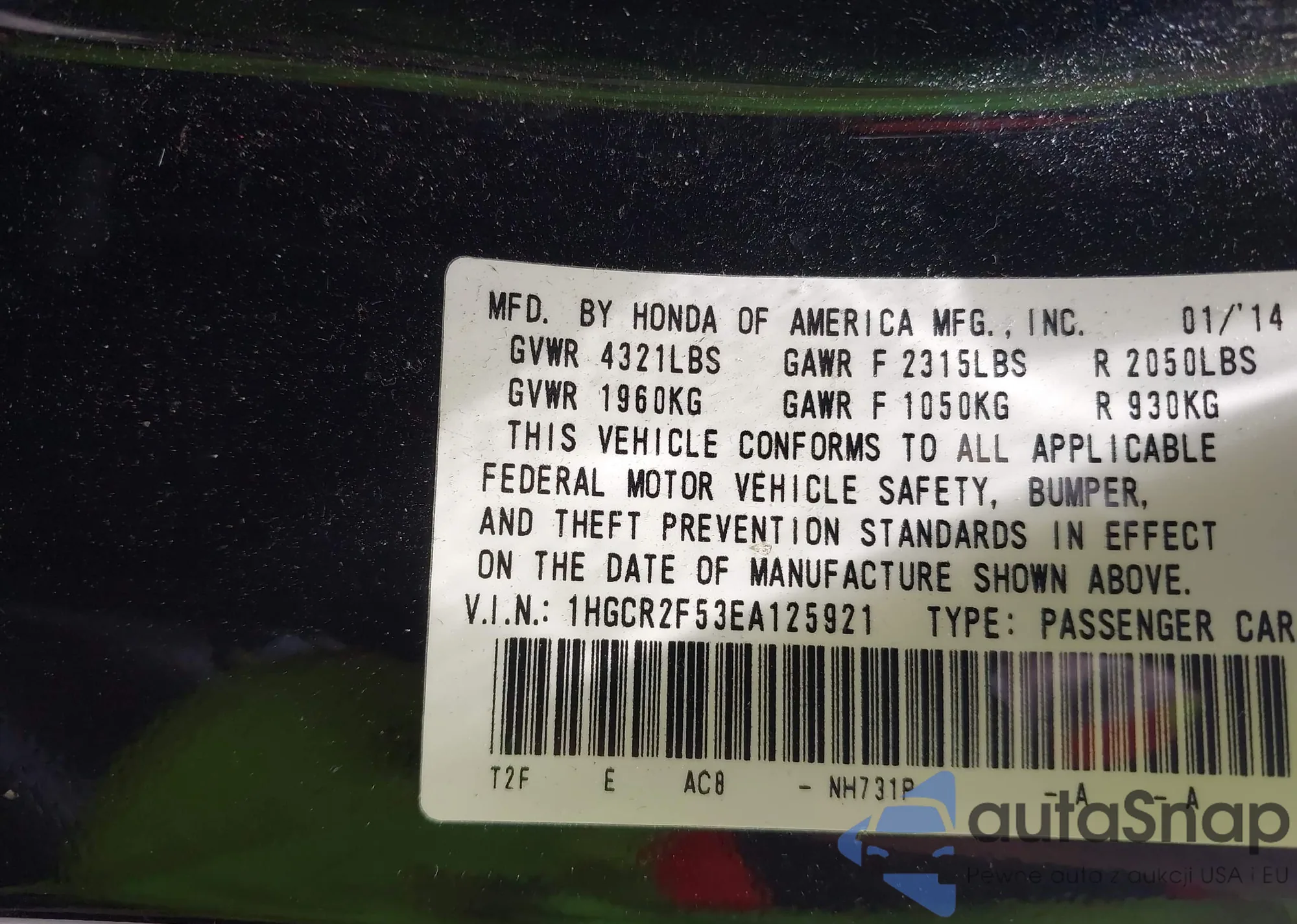 • VIN 1HGCR2F53EA125921