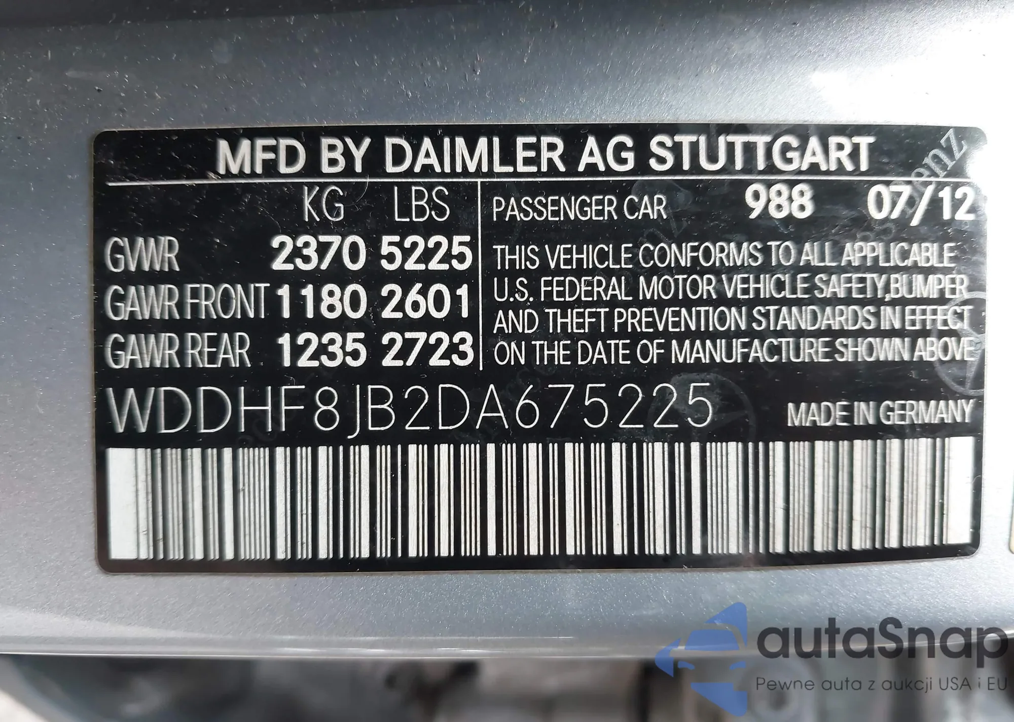 LOT: 42418142 VIN: 3FA6P0H77DR175641