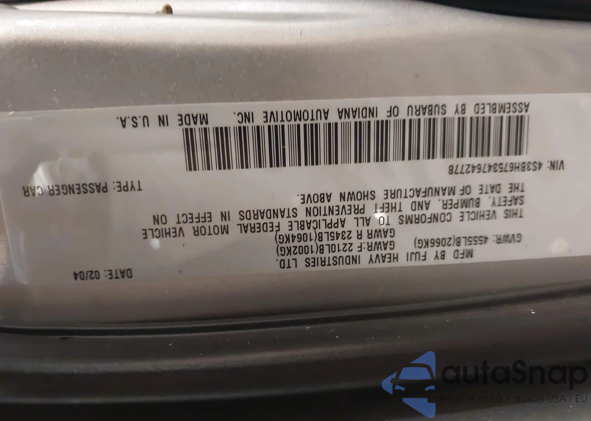 LOT: 42448877 VIN: JF1GH616X8G835965