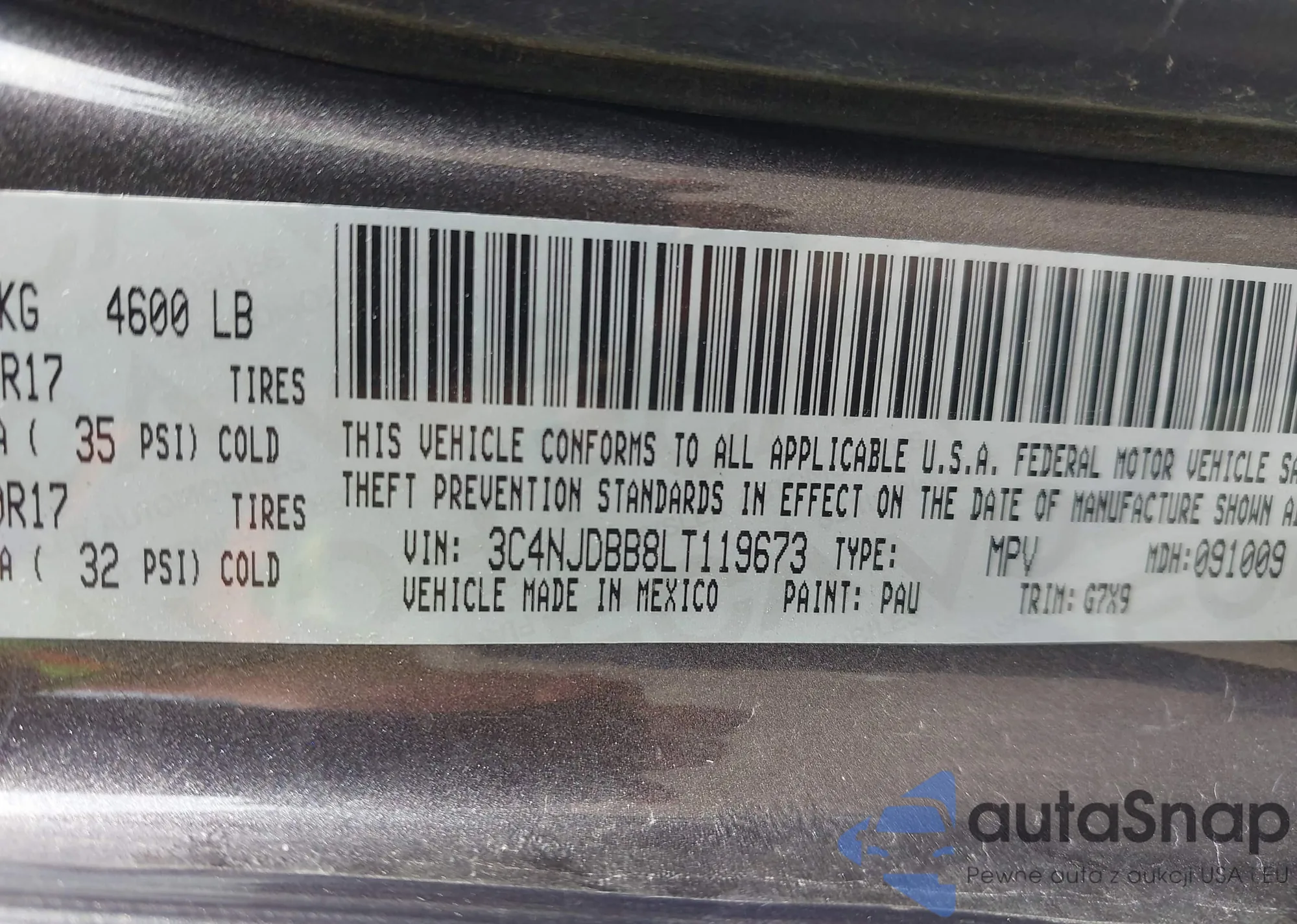 • VIN 3C4NJDBB8LT119673