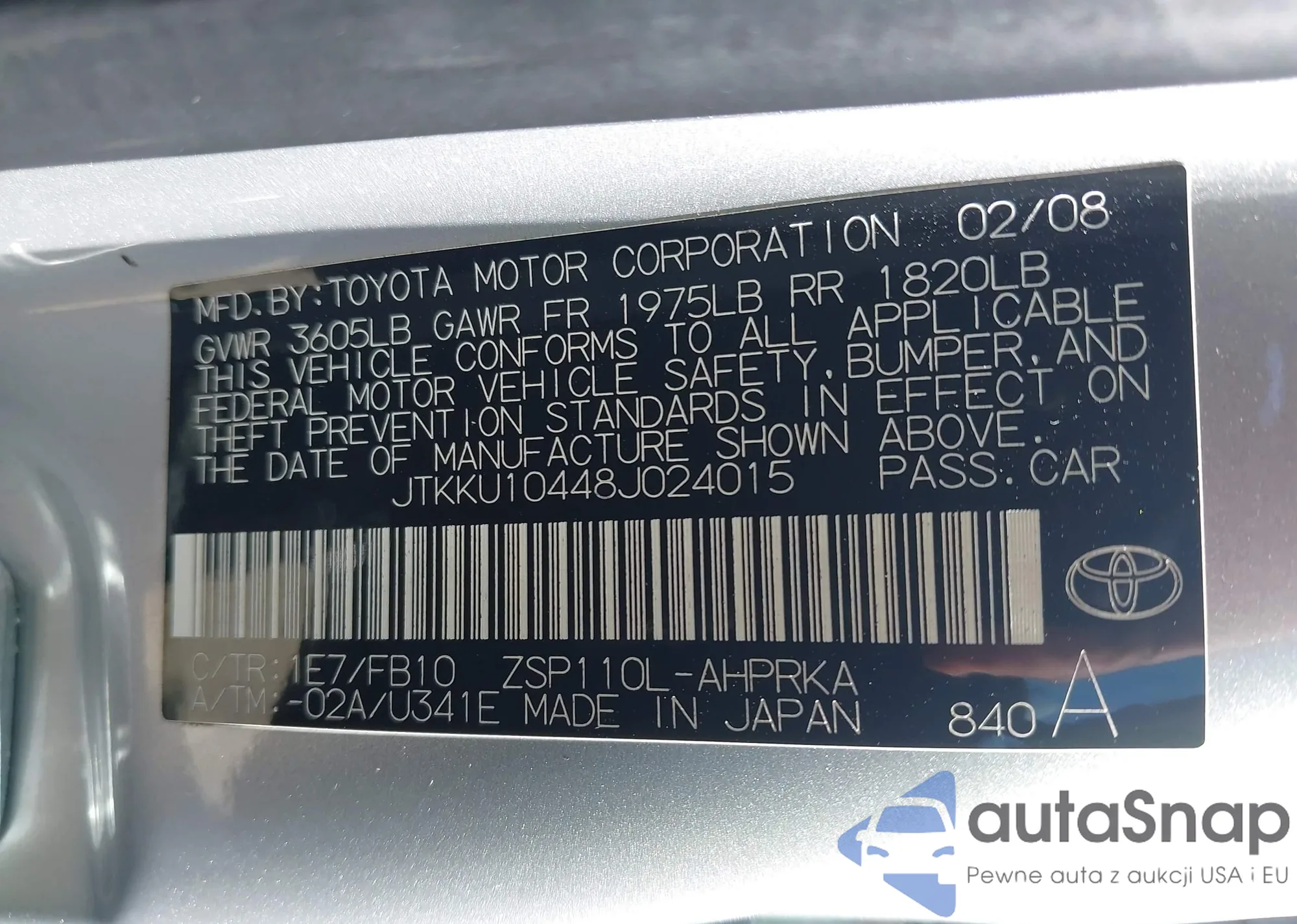 LOT: 42474519 VIN: JTKKU10448J024015