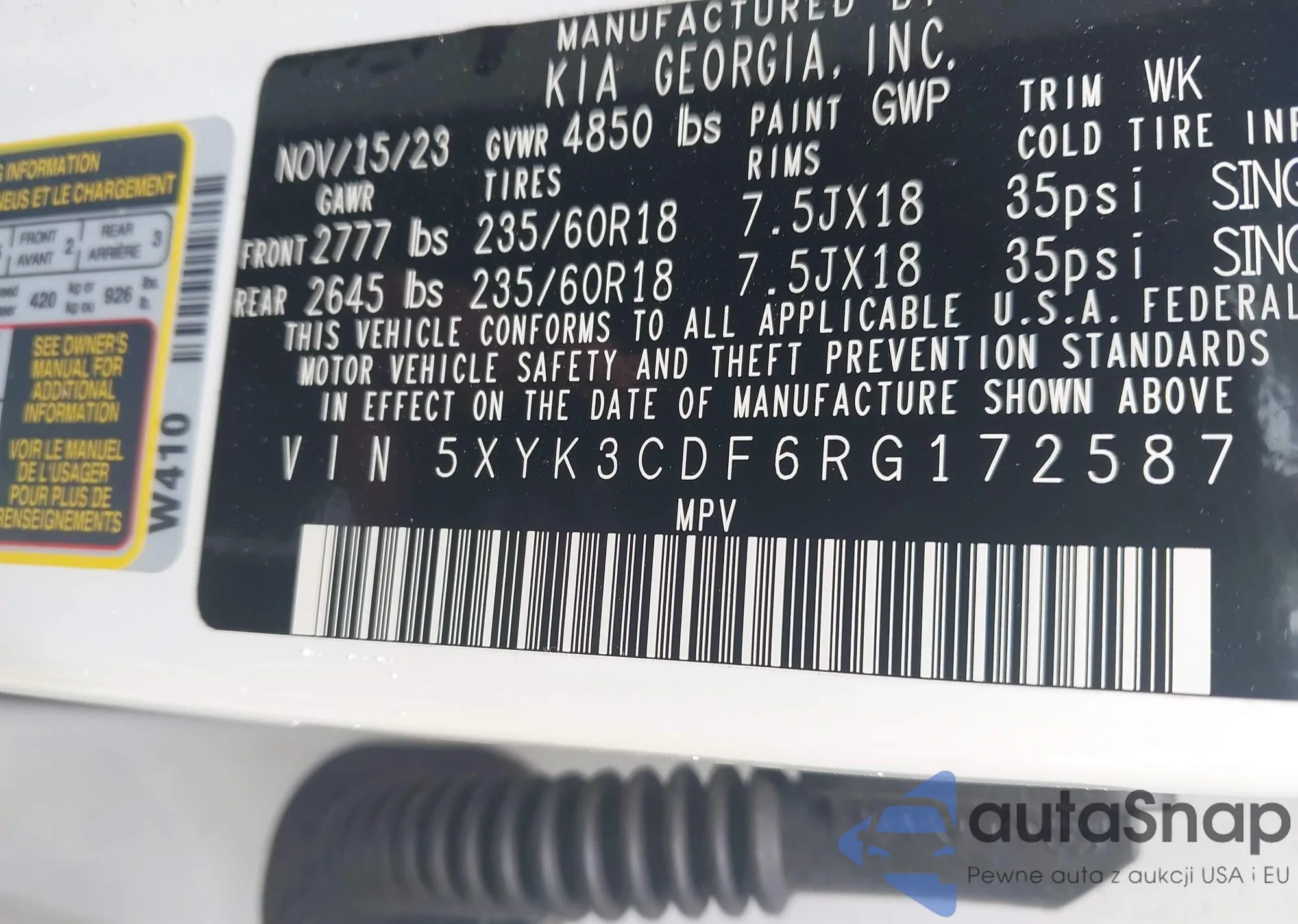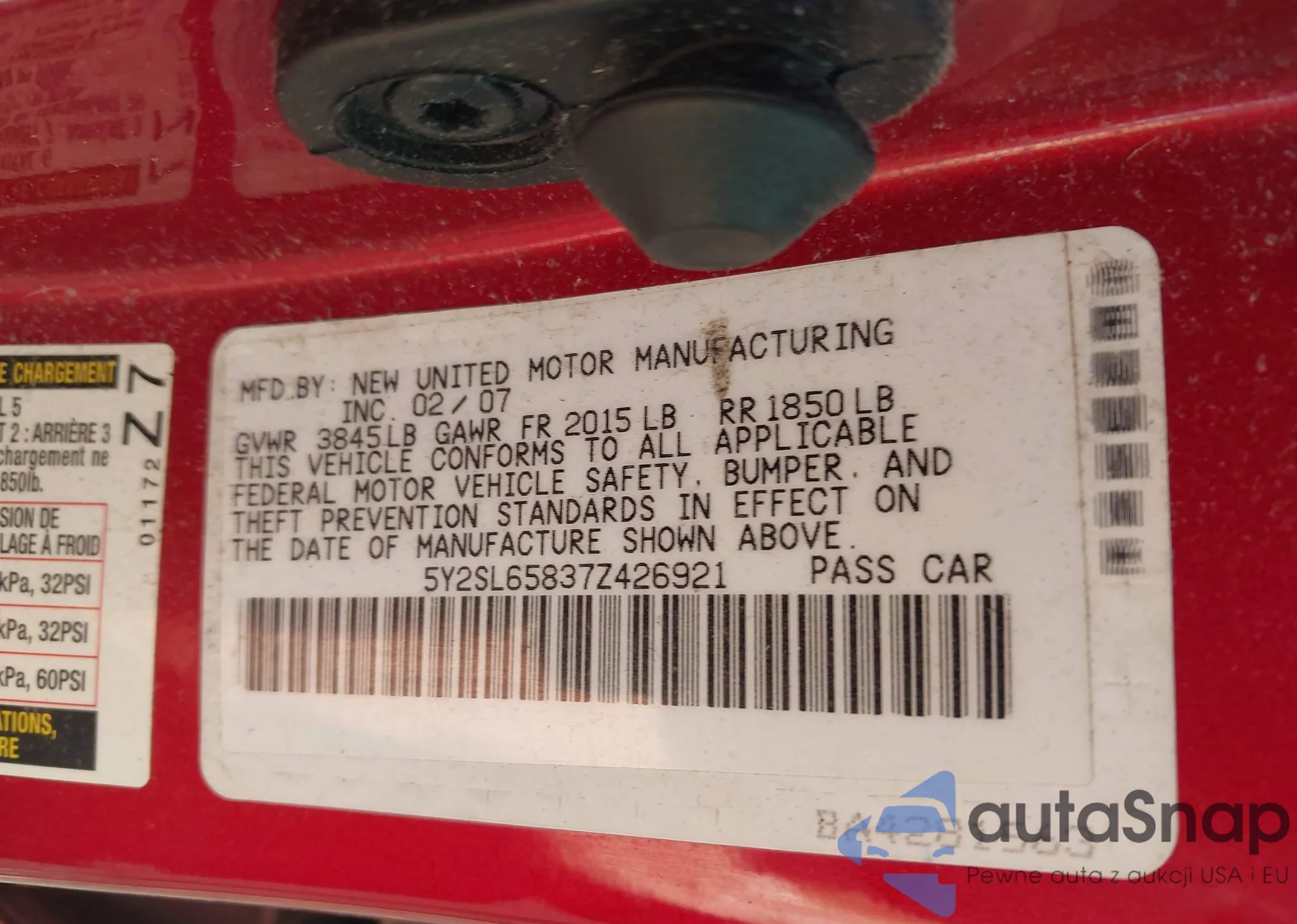 • VIN 5Y2SL65837Z426921