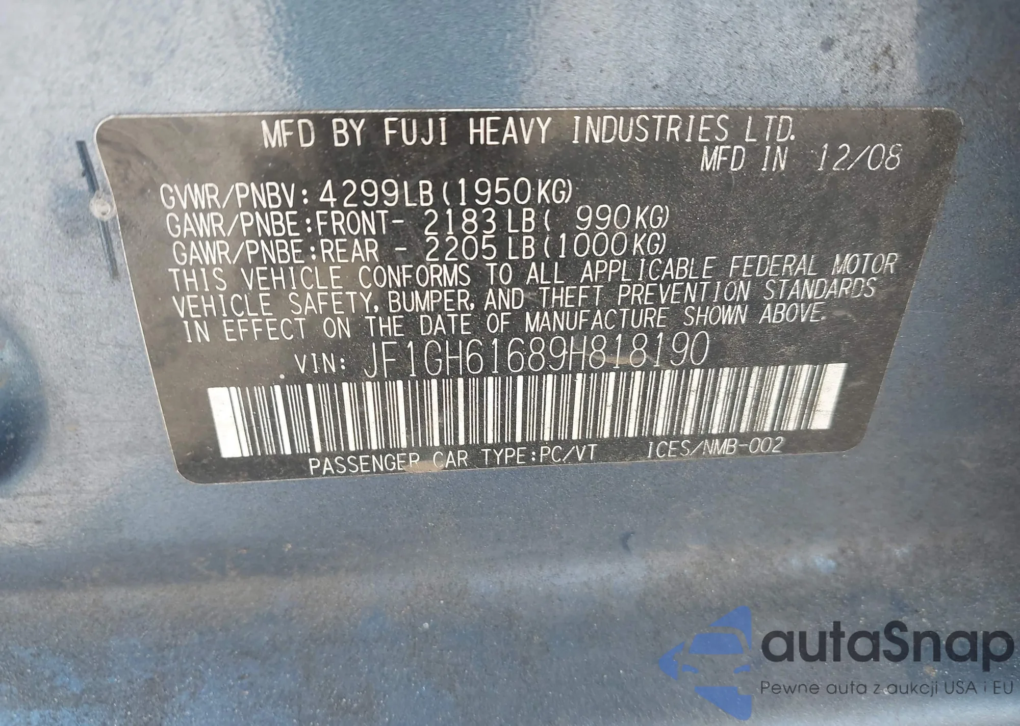 LOT: 42612875 VIN: 5Y2SL65837Z426921