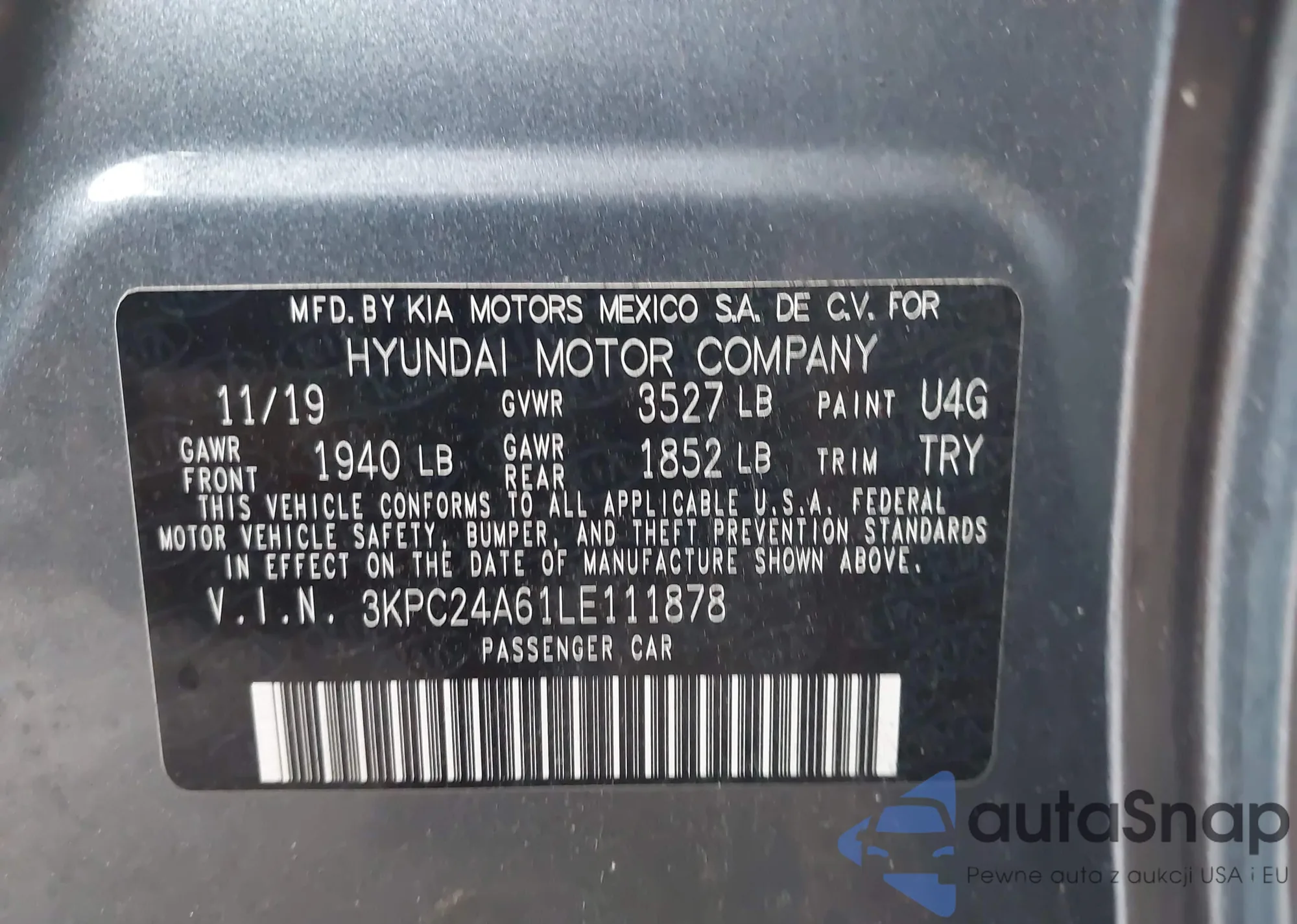 LOT: 42592891 VIN: KMHGC4DD3CU192386