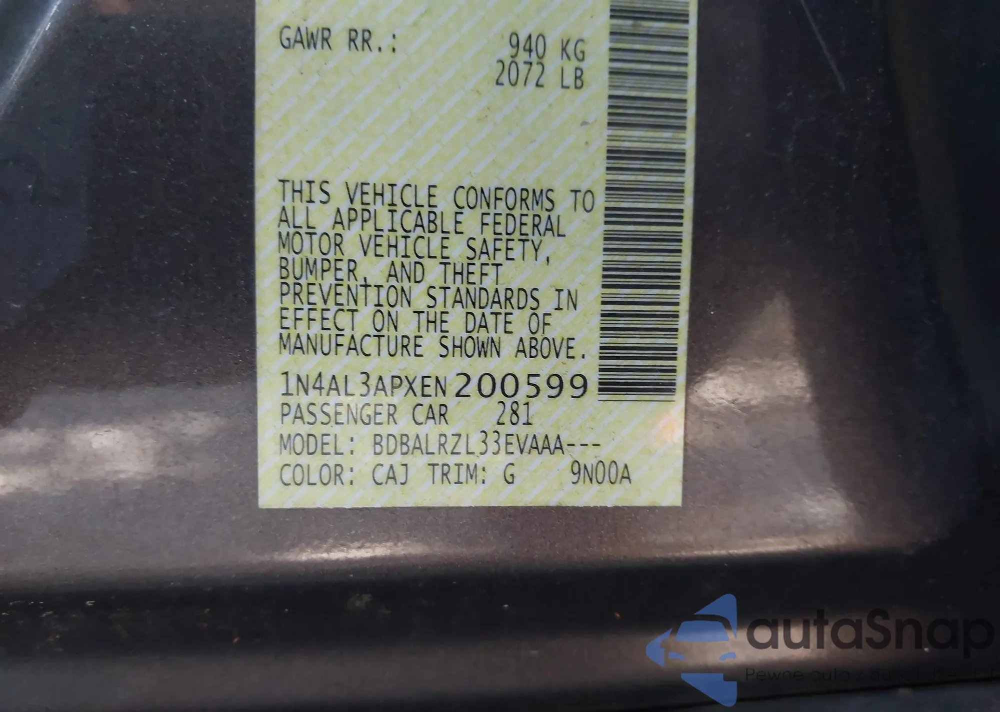 • VIN 1N4AL3APXEN200599