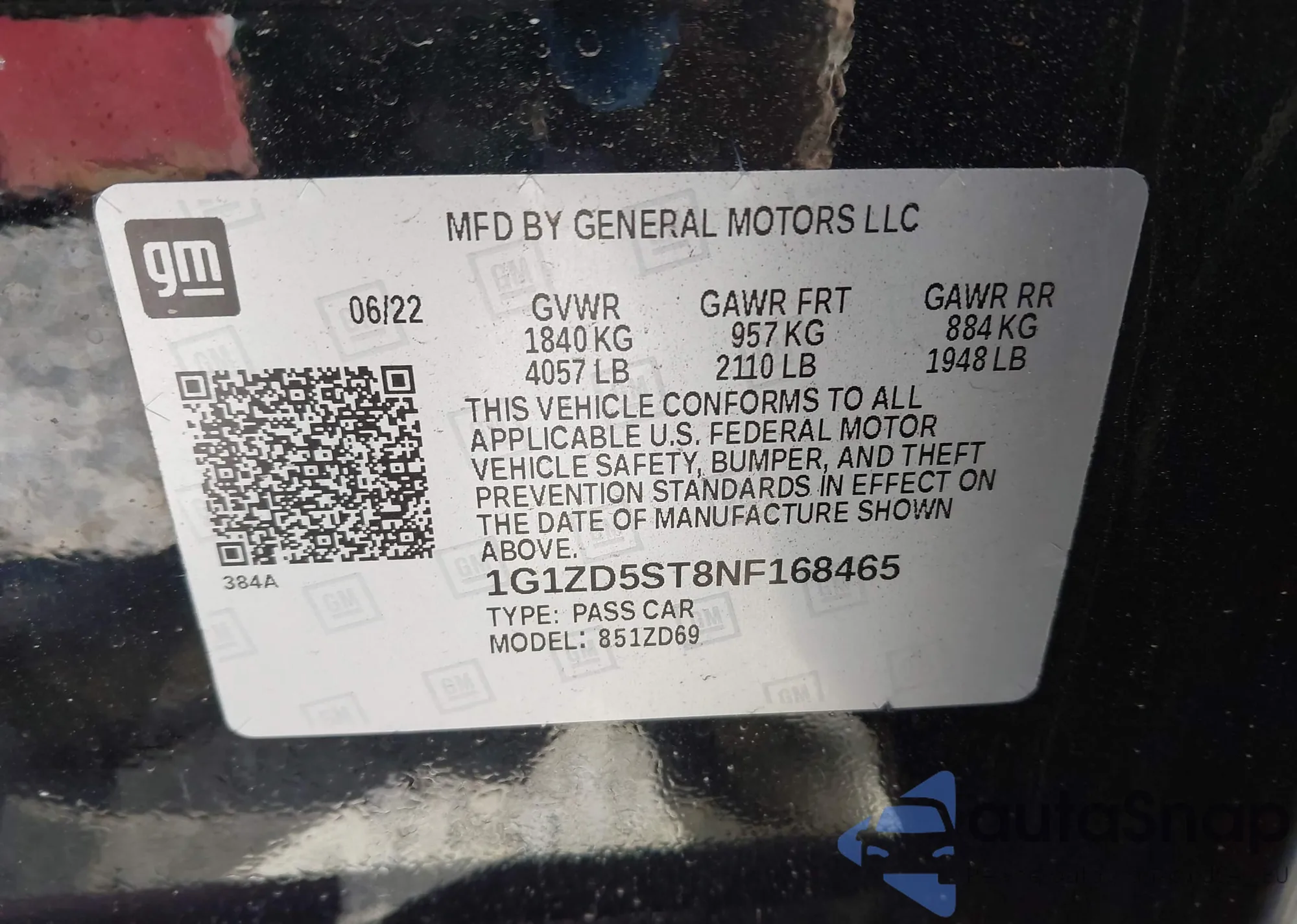 • VIN 1G1ZD5ST8NF168465