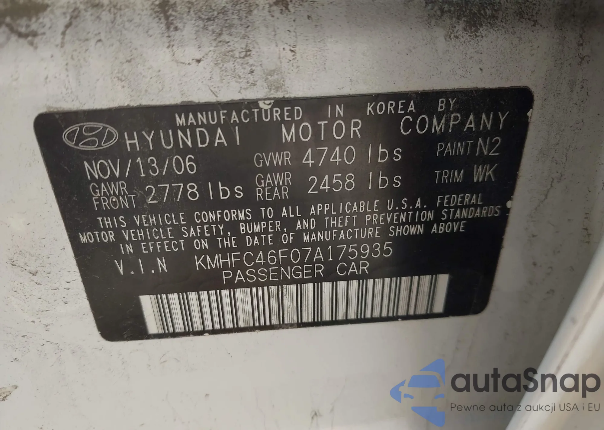 • VIN KMHGC4DD3CU192386