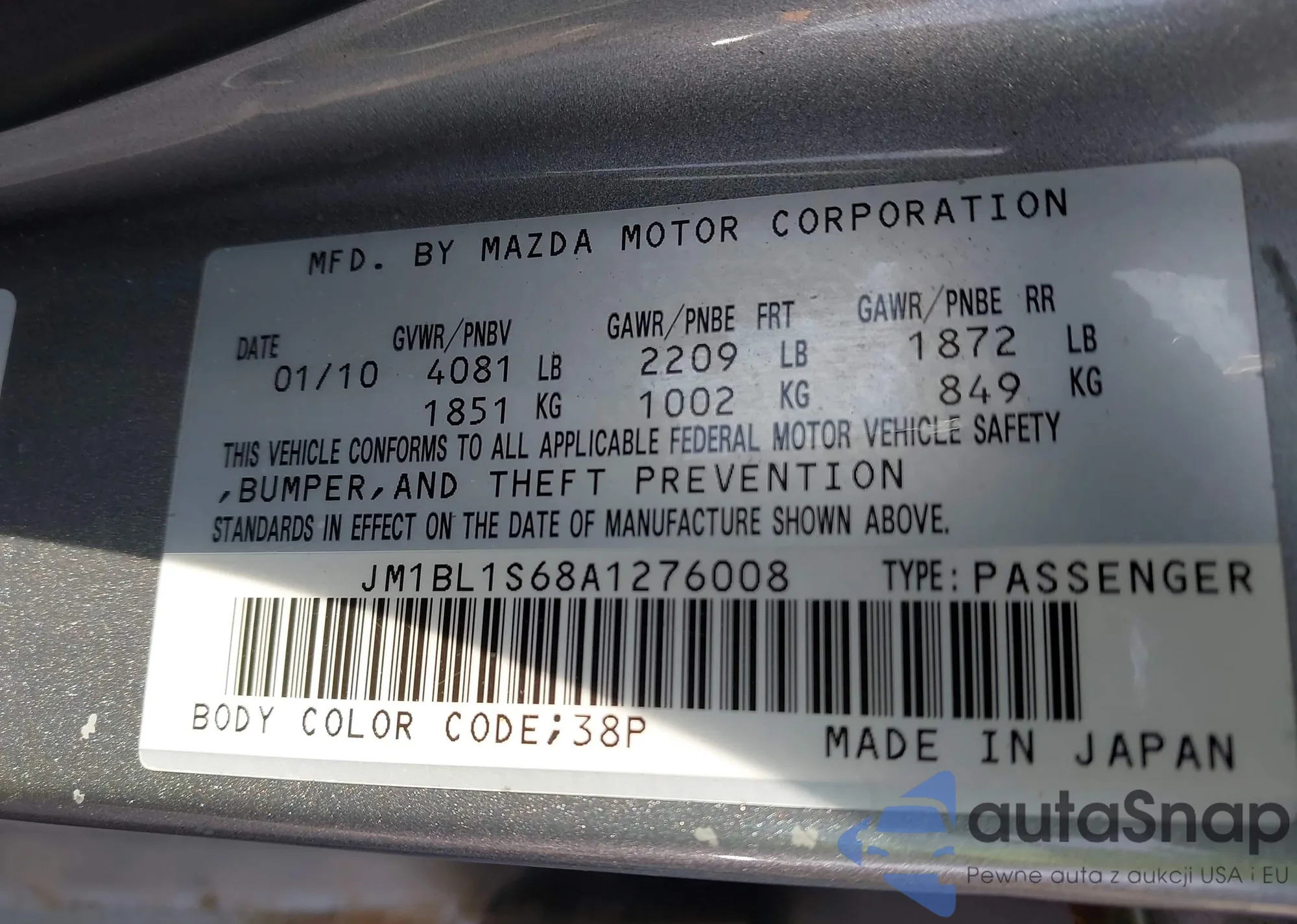 • VIN JM3KFBCM6L0774976