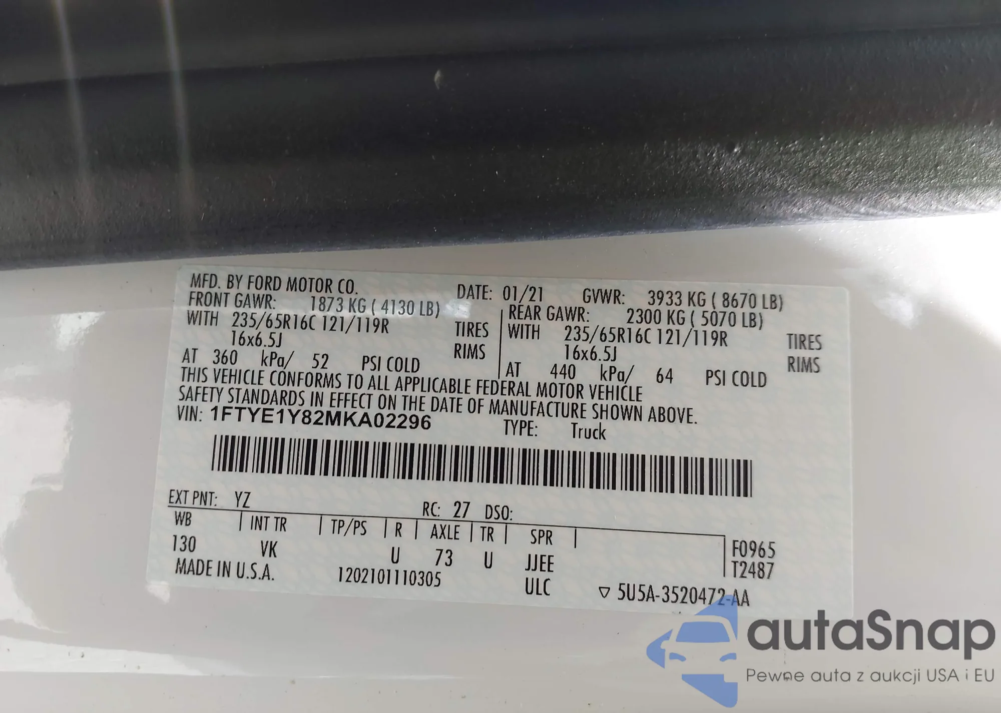 LOT: 42206813 VIN: 1FMCU03135KE15651