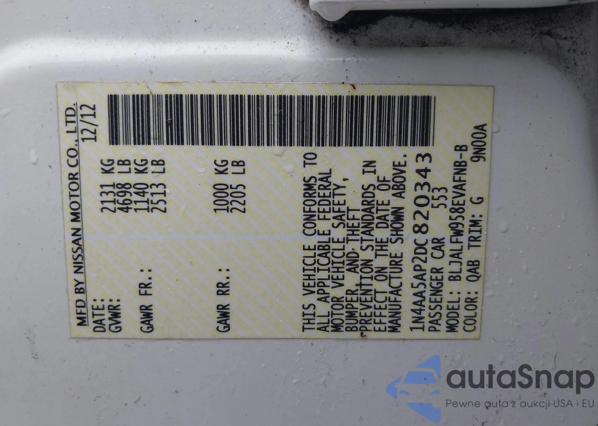 LOT: 42520118 VIN: 1N4AA5AP2DC820343