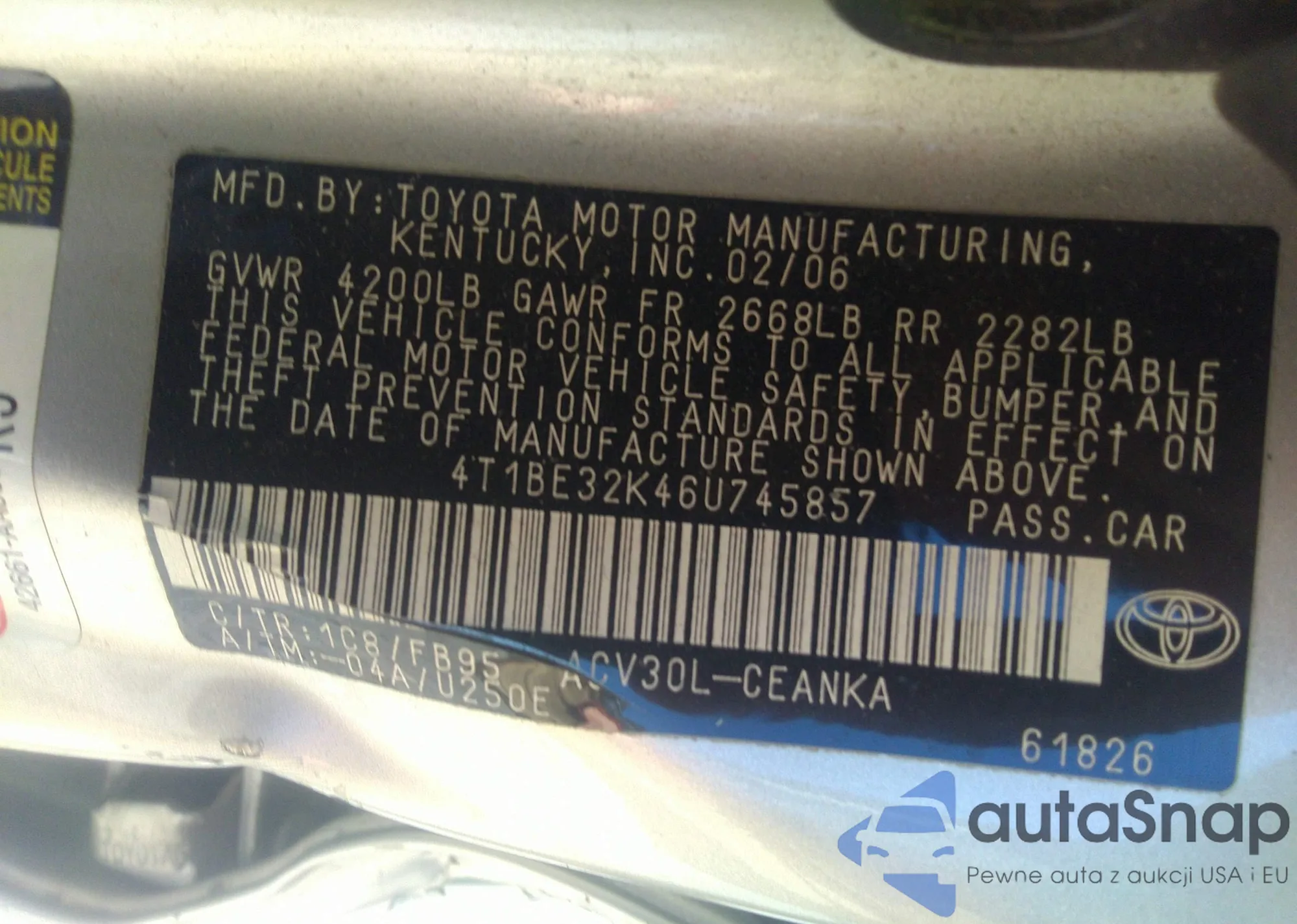 LOT: 42844800 VIN: 1NXBR32E35Z468969