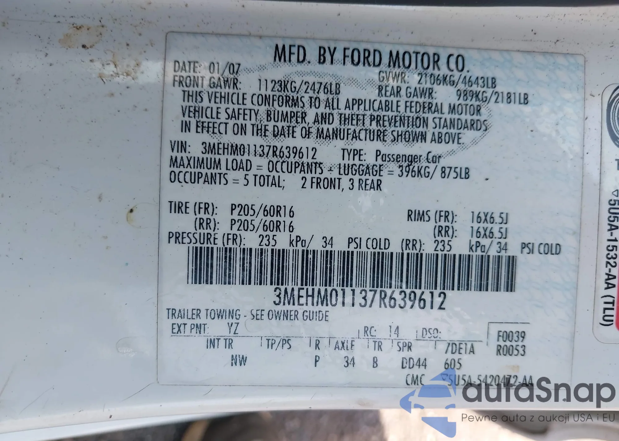 LOT: 42626318 VIN: 3MEHM01137R639612