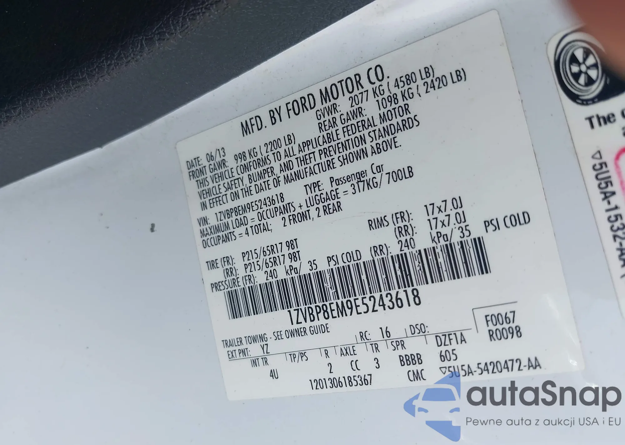 • VIN 5NPEB4AC1DH706127