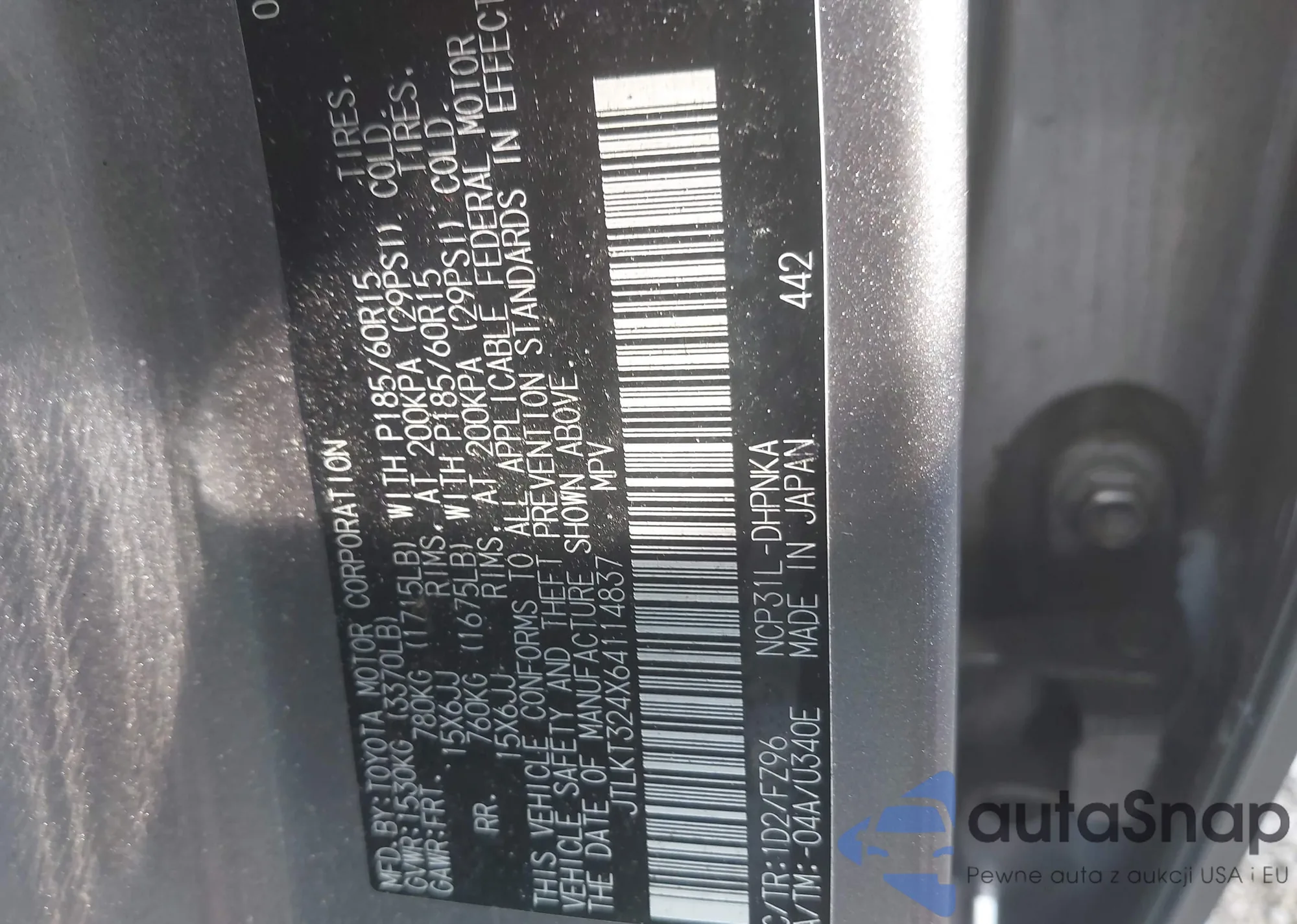 LOT: 42742353 VIN: JTLKT324X64114837