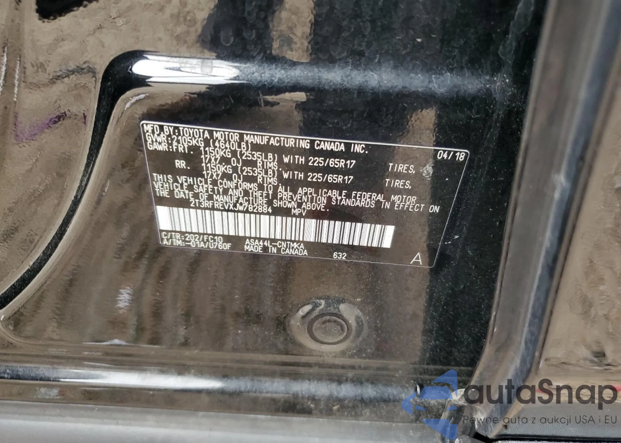 LOT: 66294115 VIN: 3TMGZ5AN3JM180617