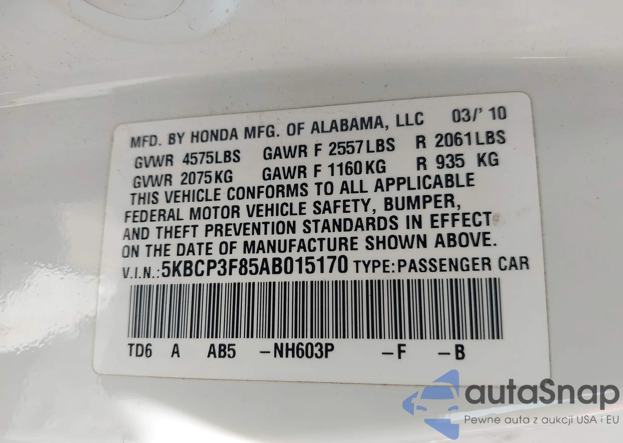 • VIN 5KBCP3F85AB015170