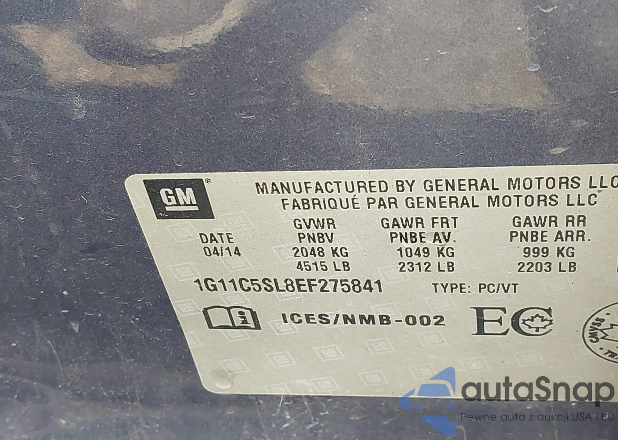LOT: 42801057 VIN: 1G11C5SL8EF275841