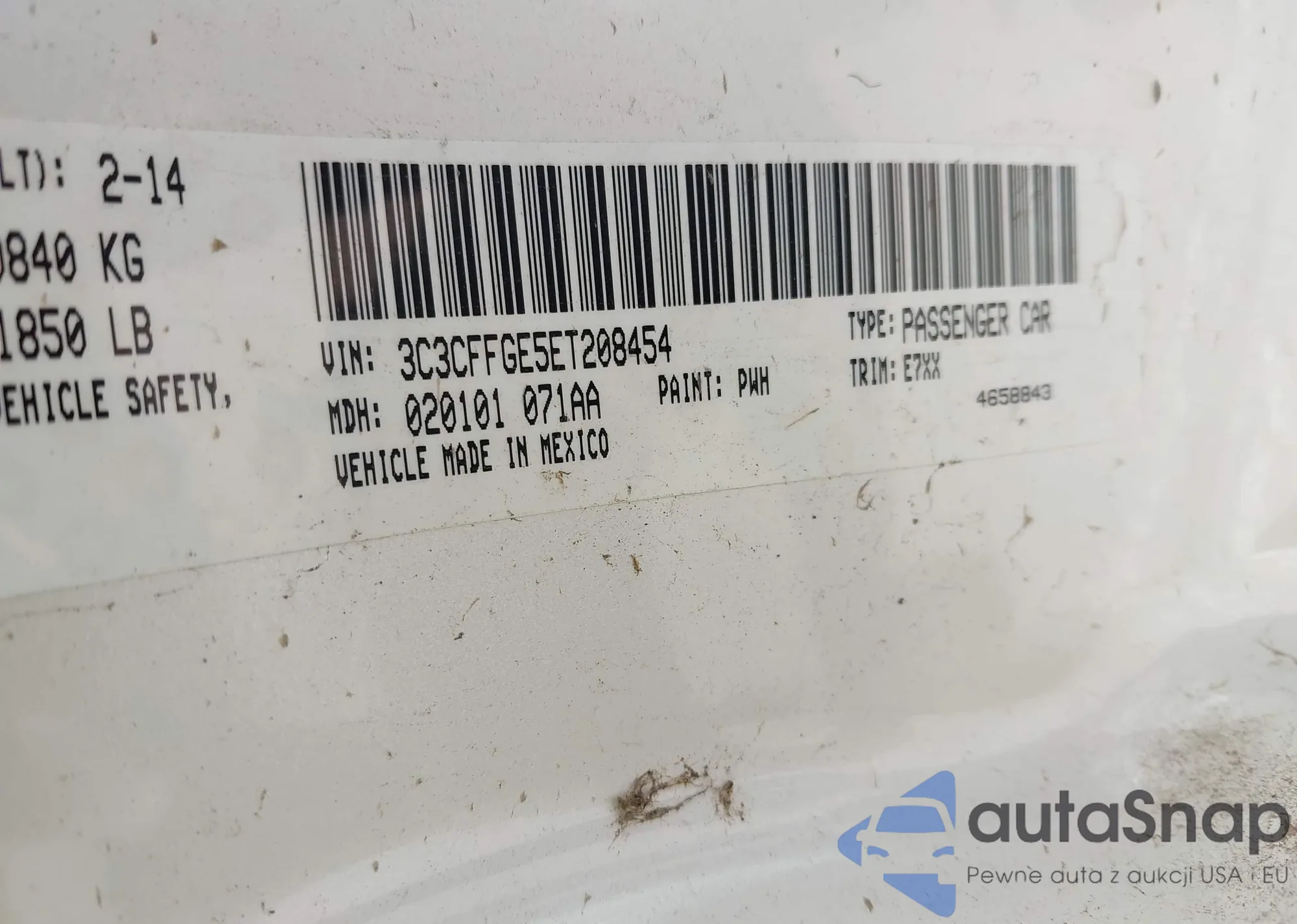 • VIN 3C3CFFGE5ET208454