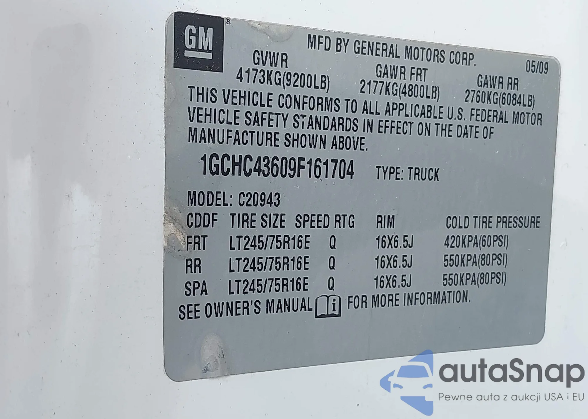 • VIN 1GCHC43609F161704