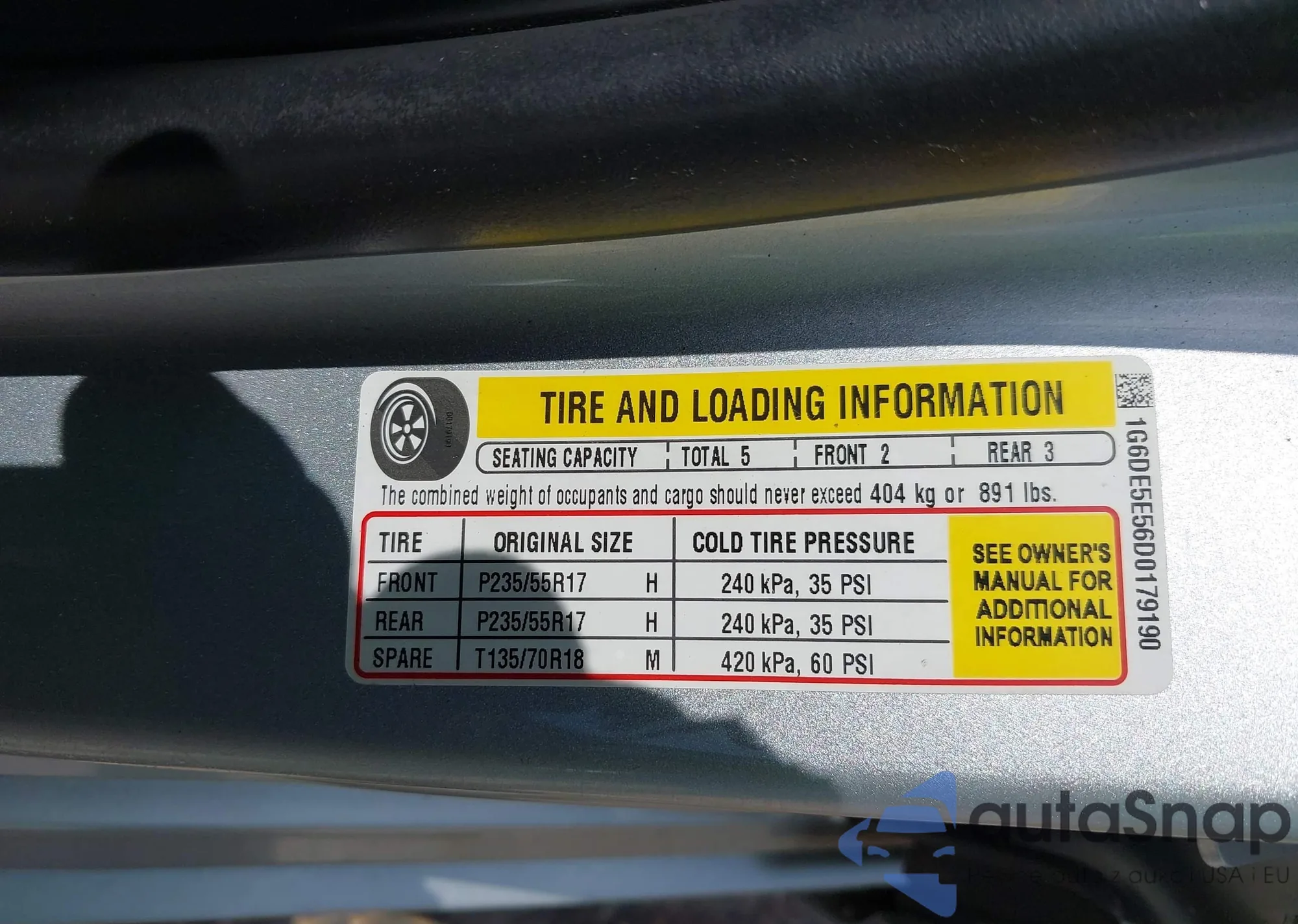 LOT: 42726459 VIN: 1G6DE5E56D0179190
