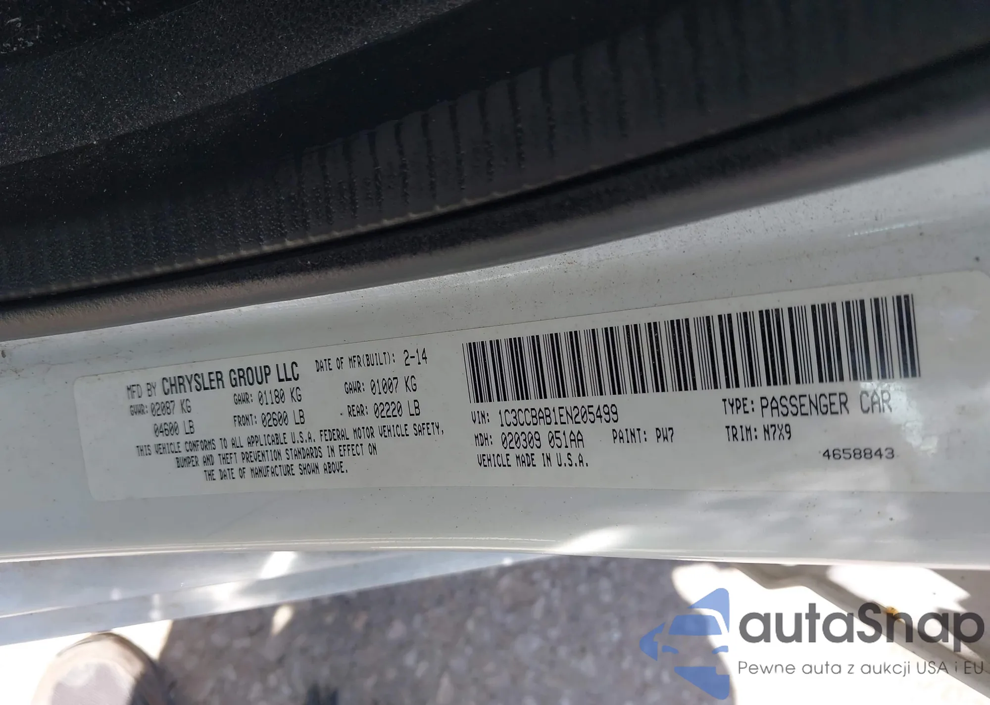 LOT: 42827658 VIN: 1C3CCBAB1EN205499