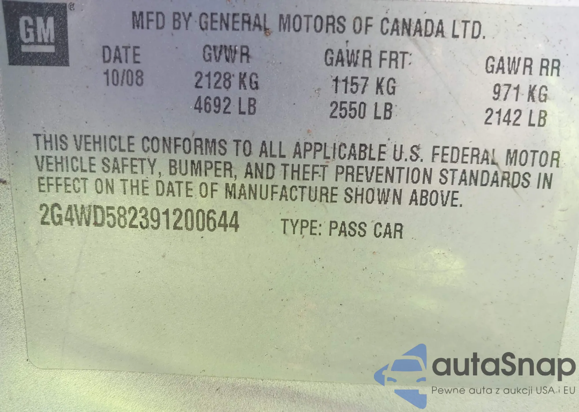 LOT: 42826605 VIN: 1G4CW52K8W4602536