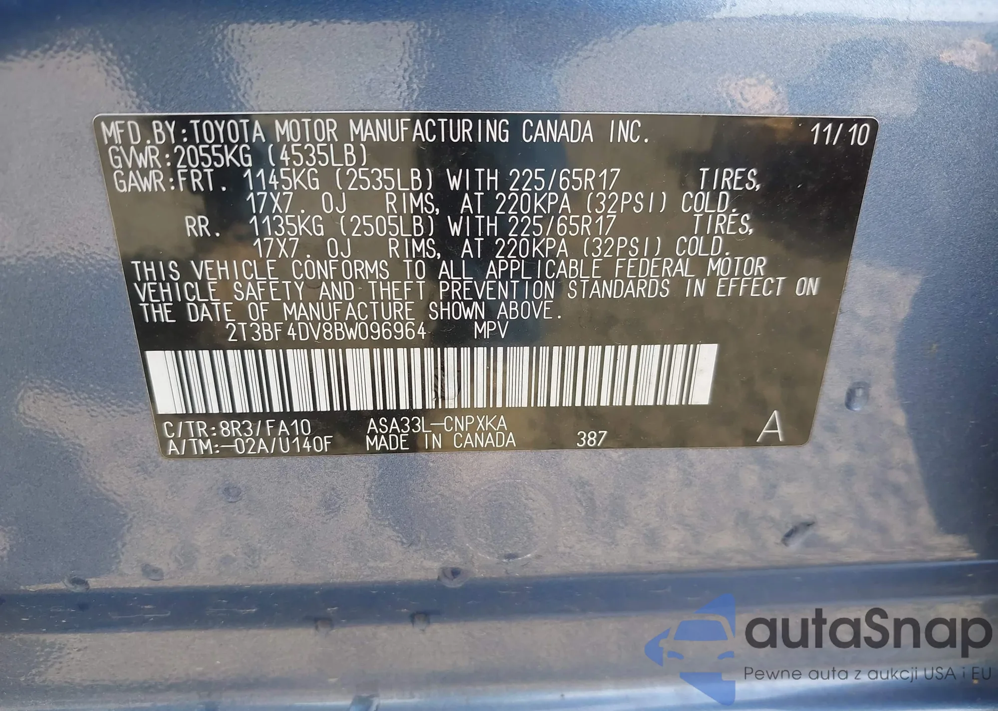 • VIN 2T3BF4DV8BW096964