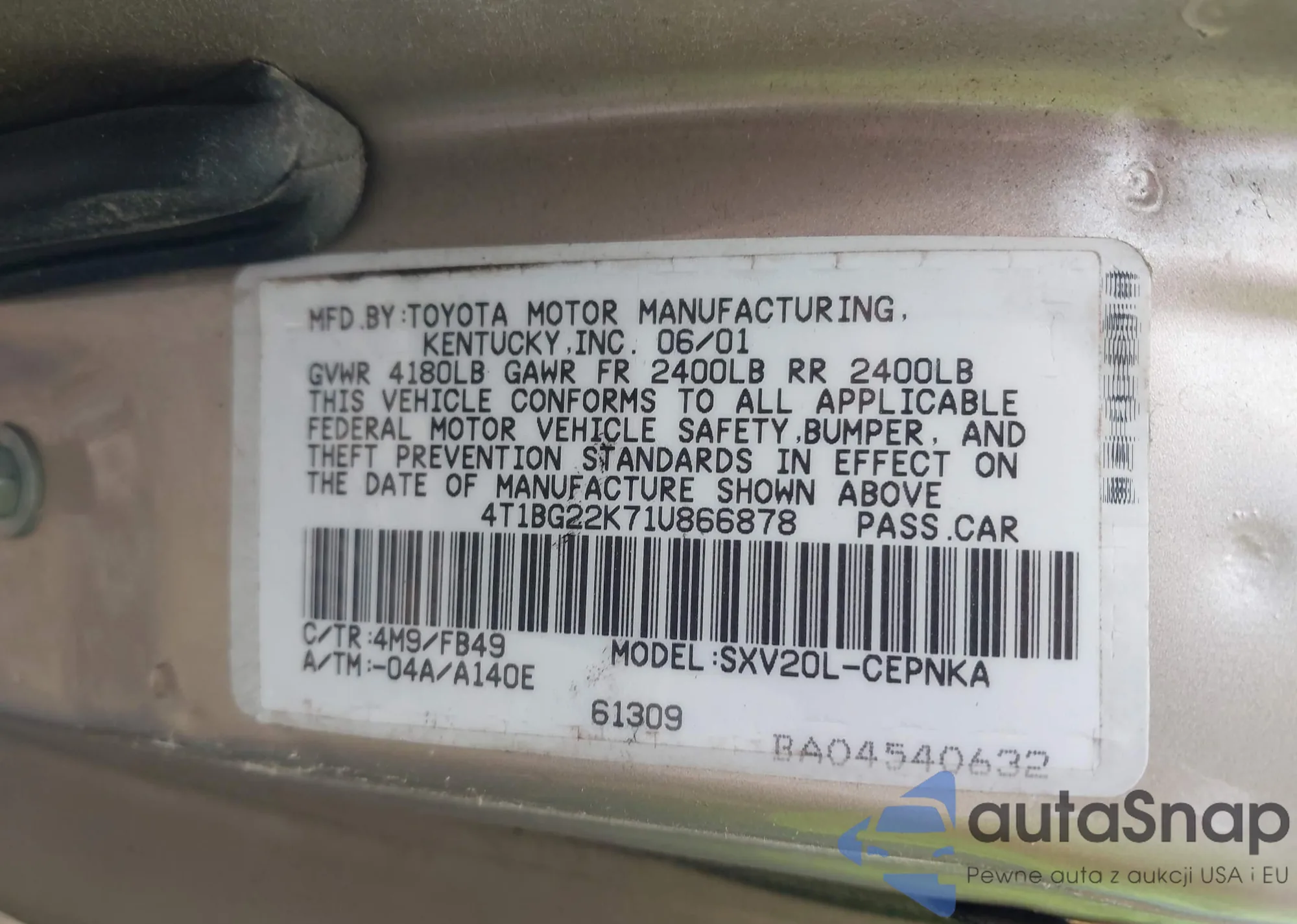 LOT: 42412168 VIN: 4T1BG22K71U866878