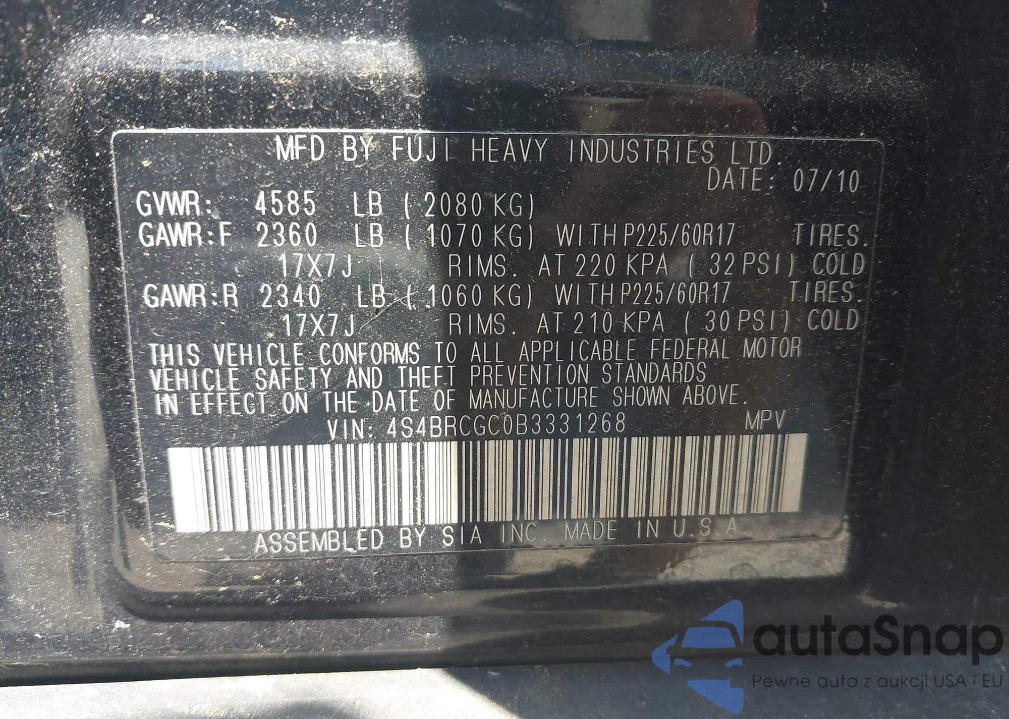 • VIN 4S4BRCGC0B3331268