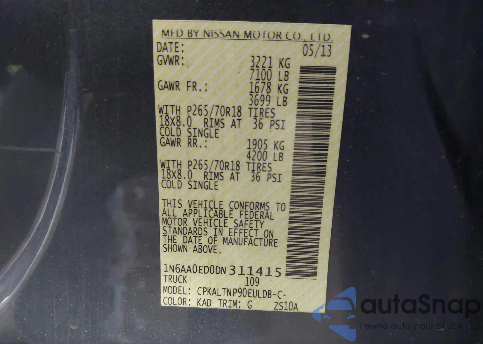 LOT: 56960325 VIN: 1N4AL11D26N394671