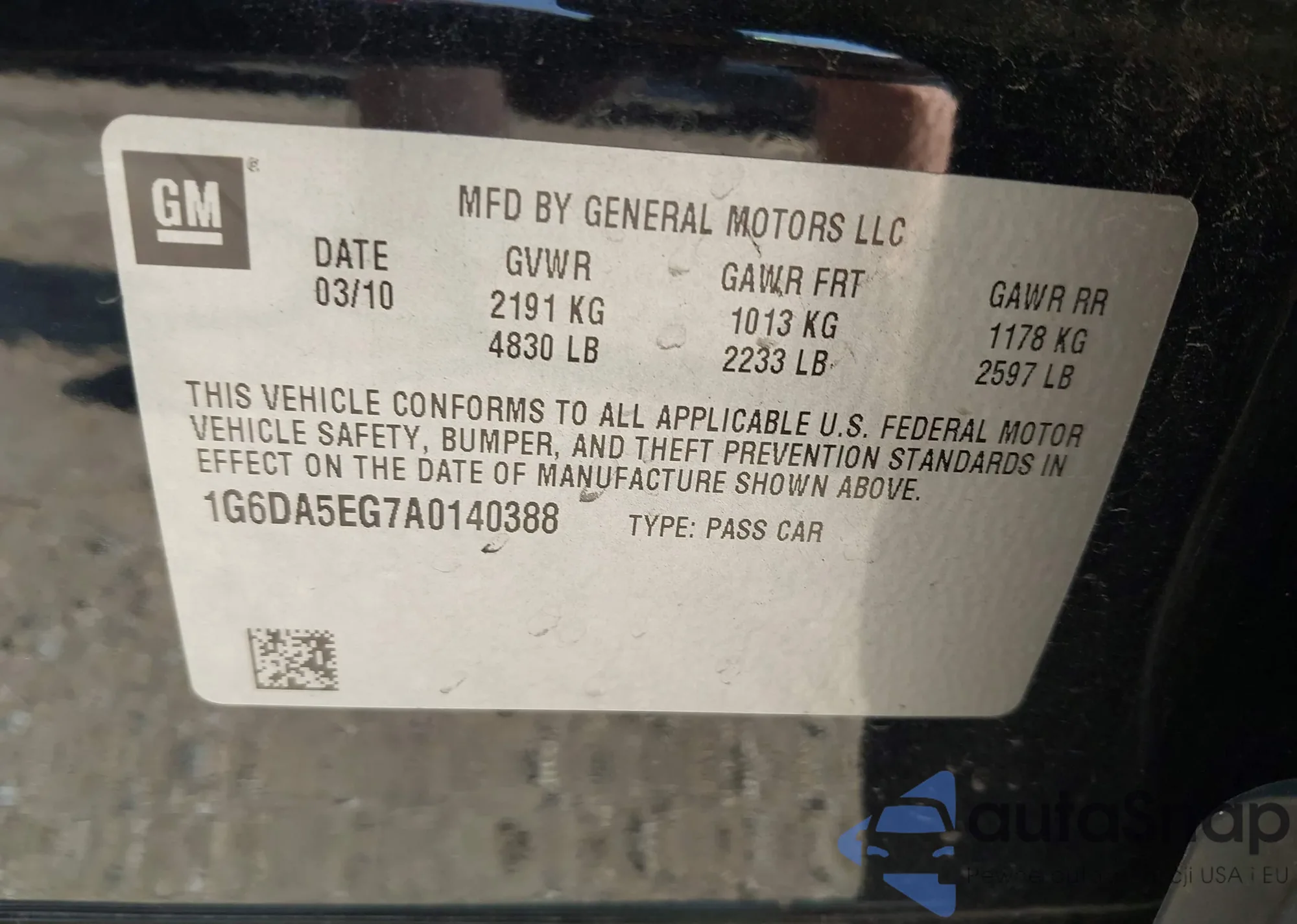 • VIN 1G6DA5EG7A0140388