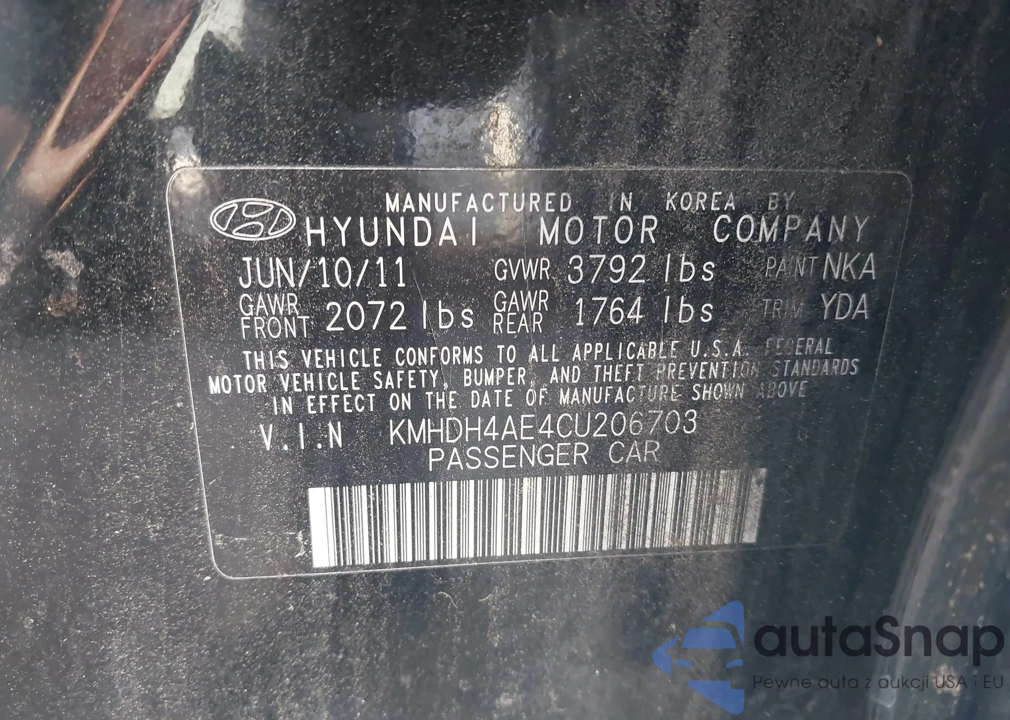 • VIN KMHDH4AE4CU206703