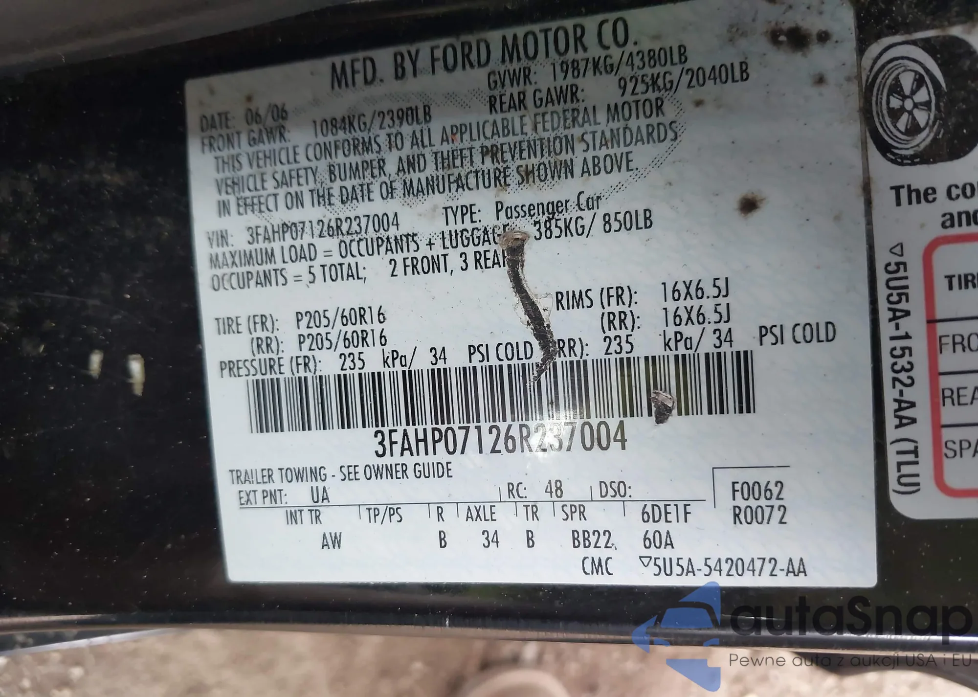 • VIN 3FAHP07126R237004