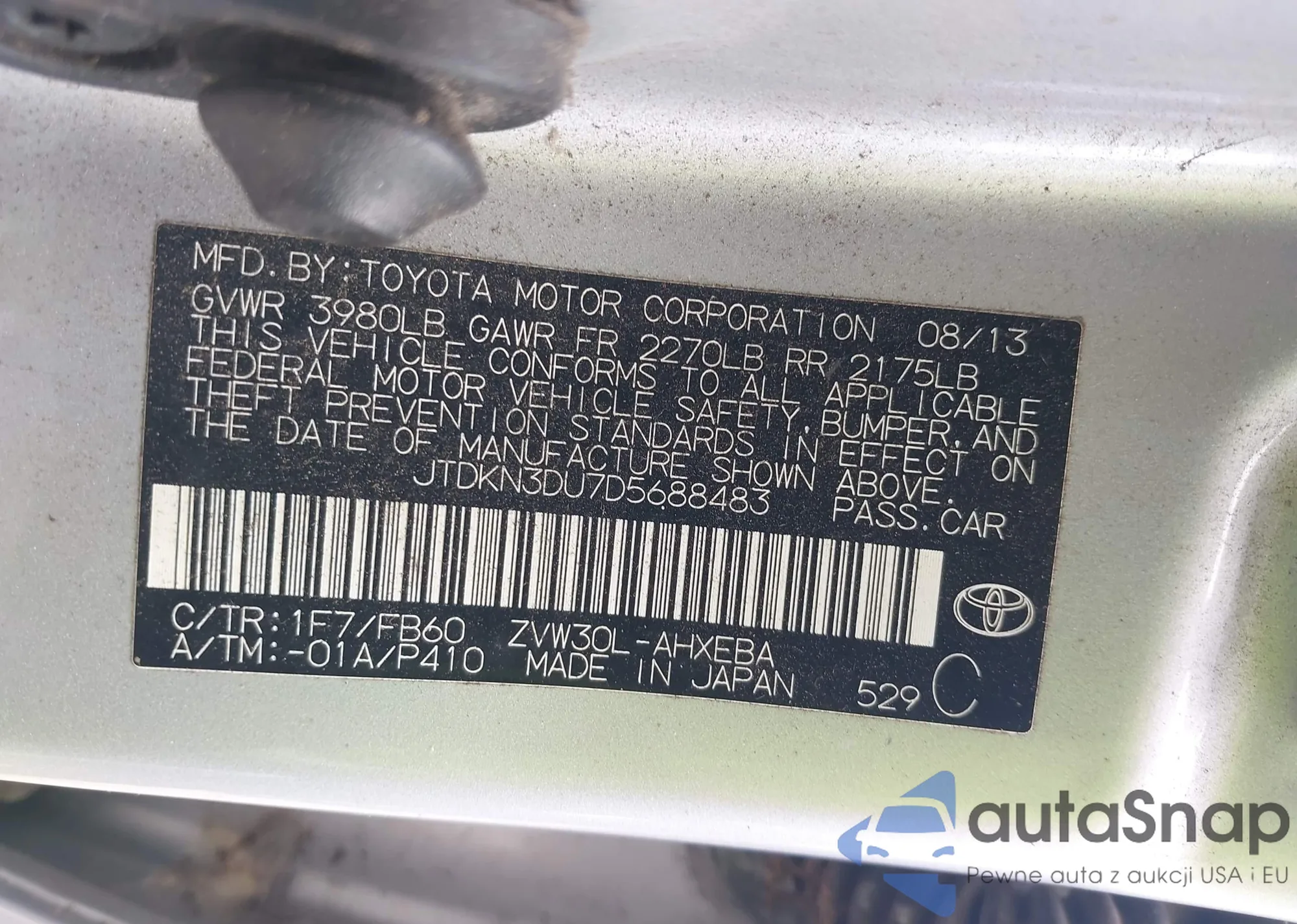 • VIN JTDKN3DUUD5688483