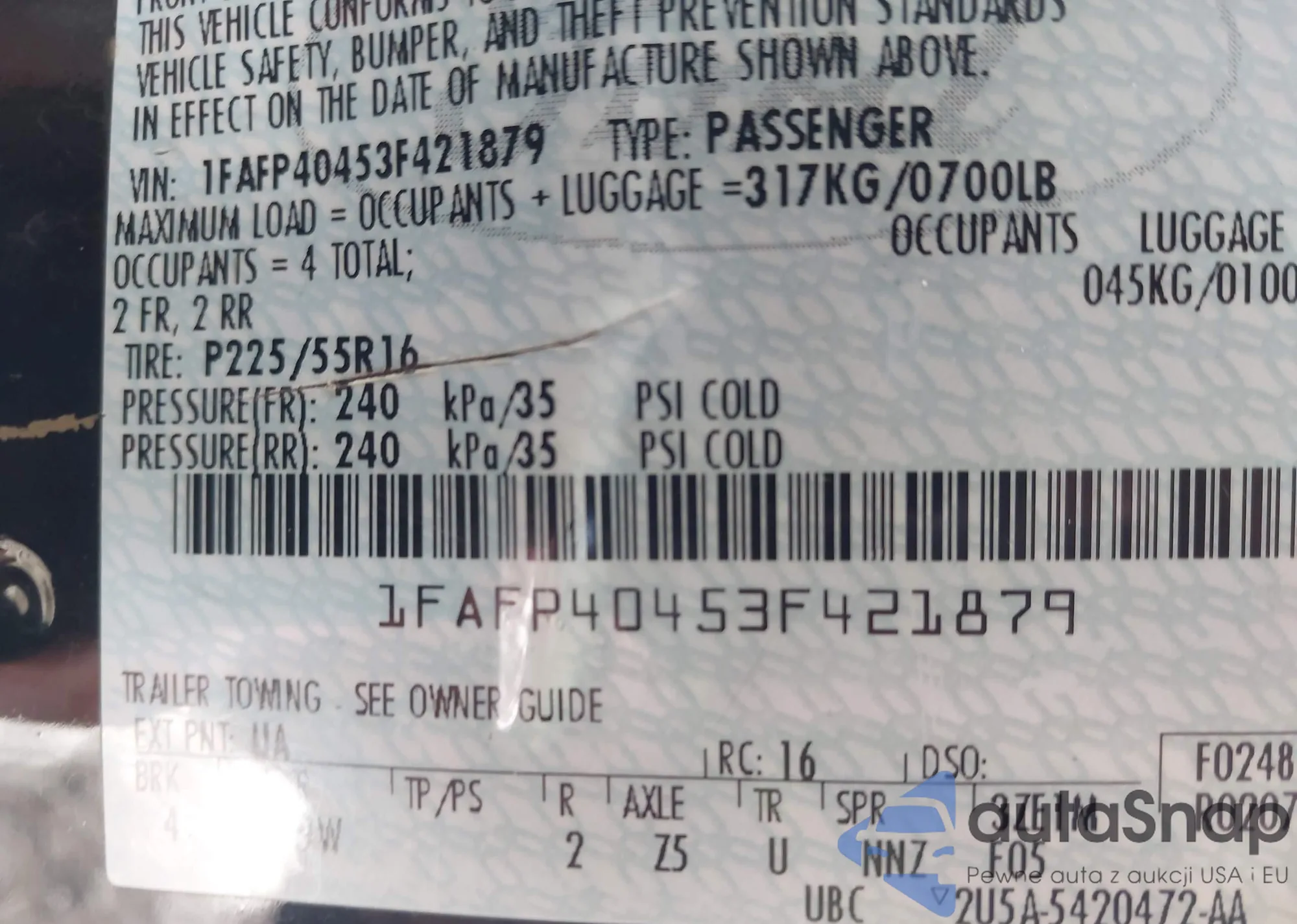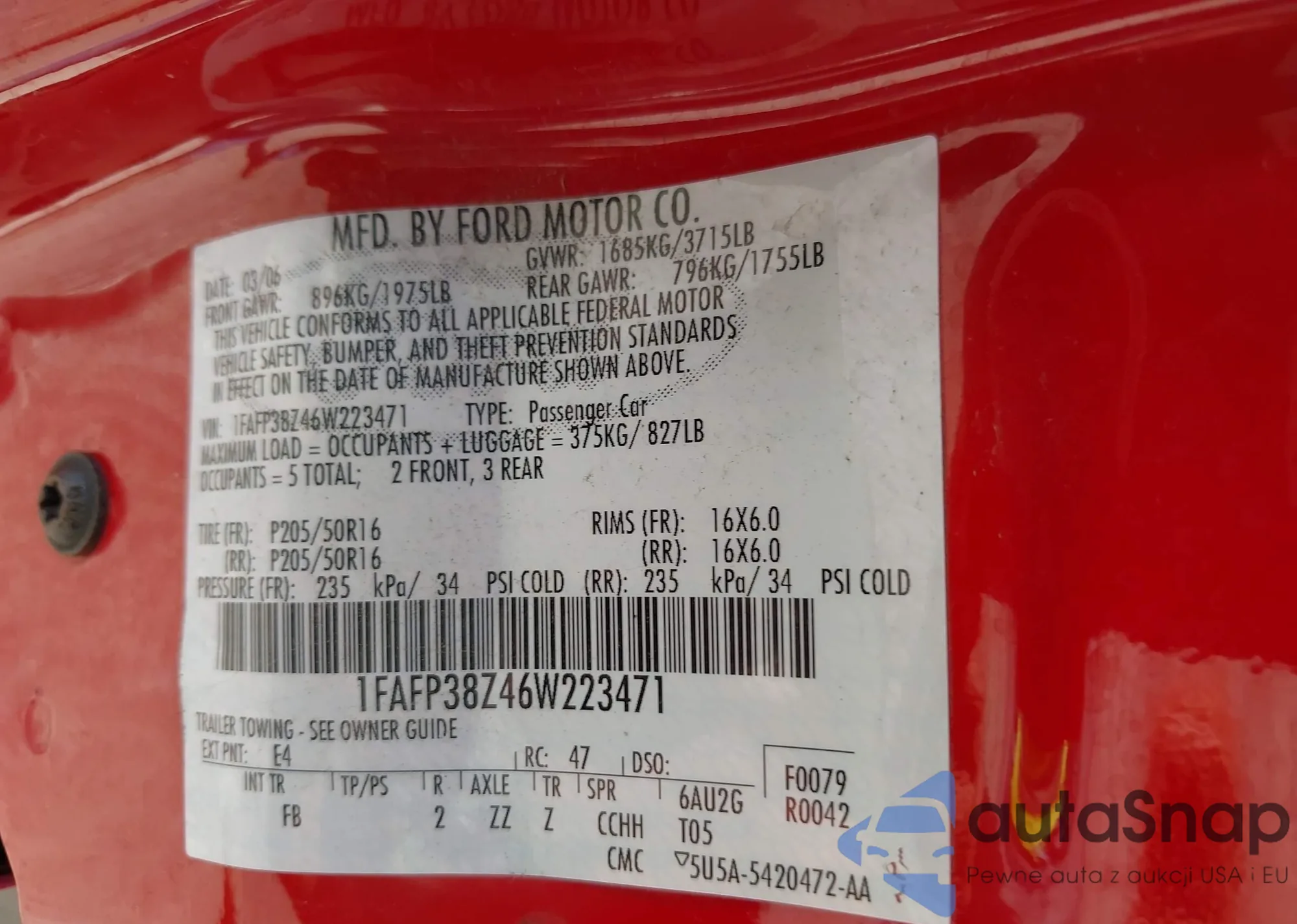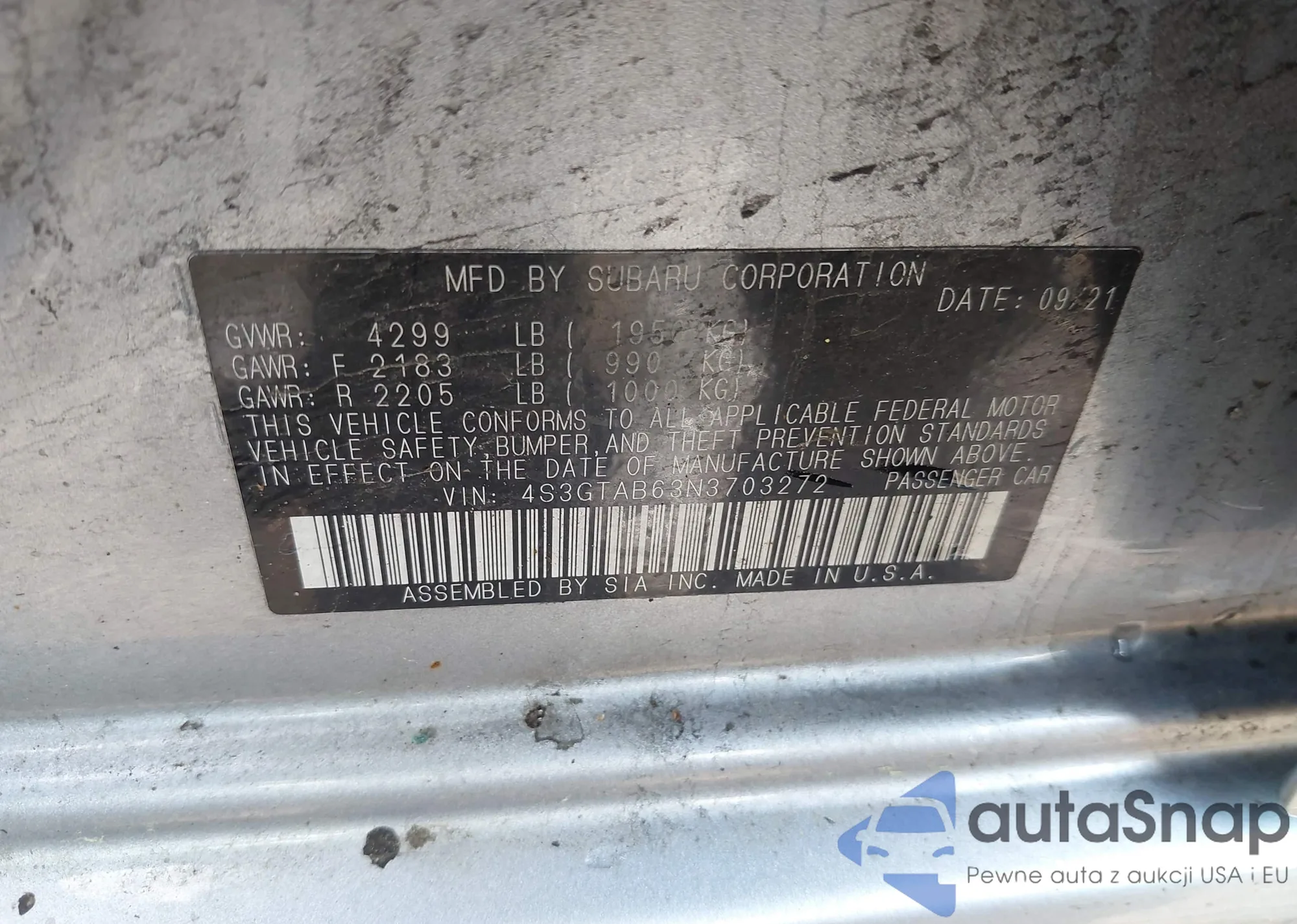 • VIN 4S3GTAB63N3703272