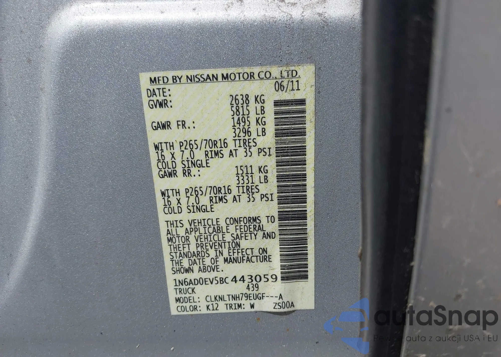• VIN 1N6AD0EV5BC443059