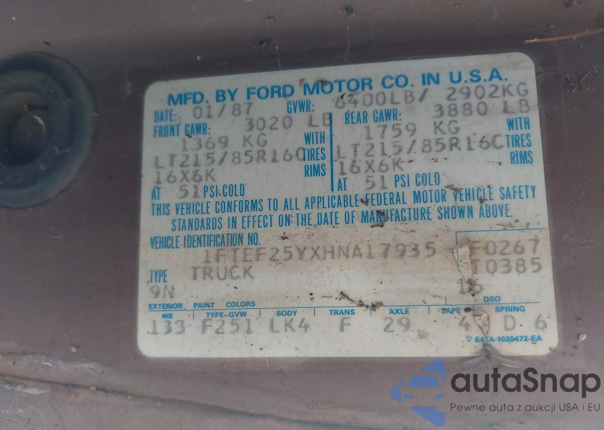 • VIN 1FTEF25YXHNA17935