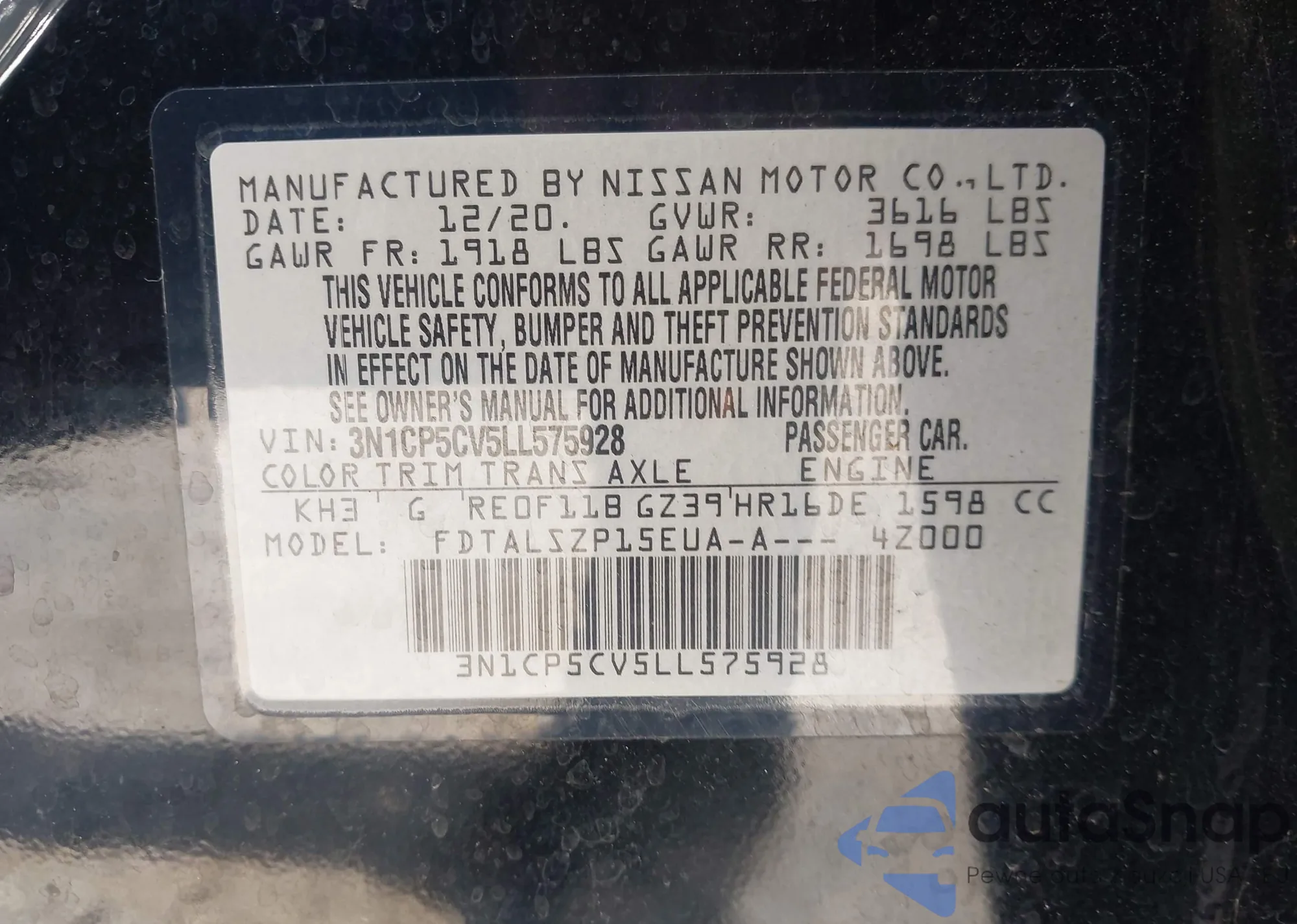 • VIN 3N1CP5CV5LL575928