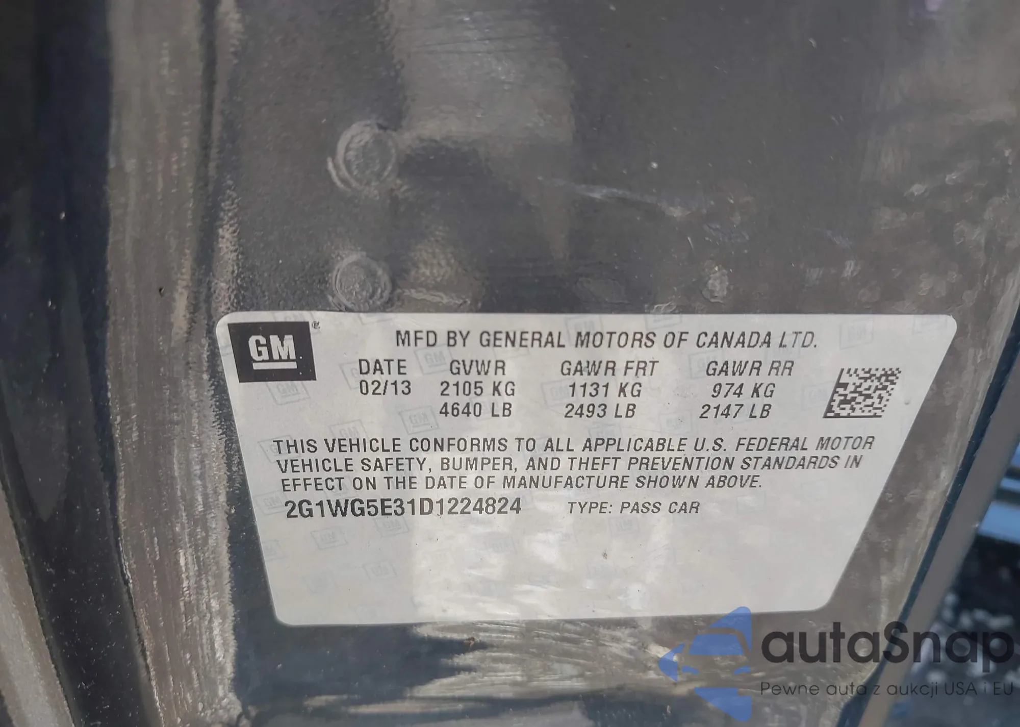LOT: 42461616 VIN: 1G2ZG58N074270627