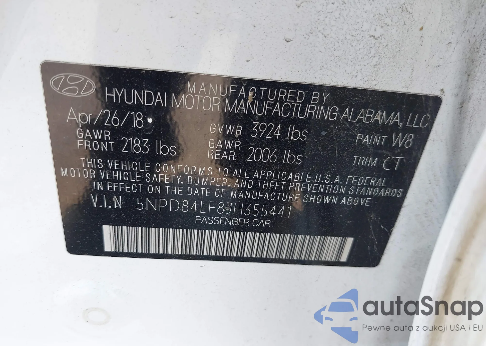 • VIN 5NPD84LF8JH355441