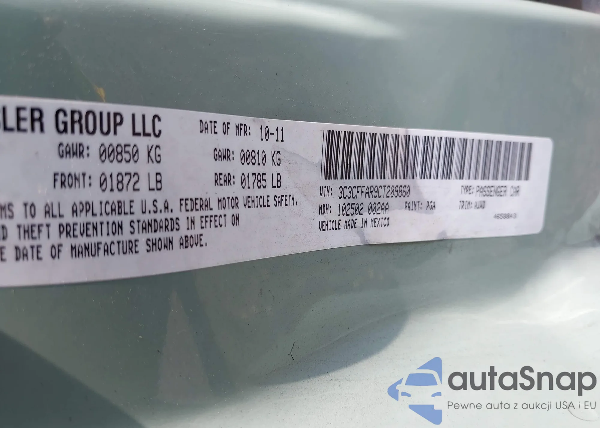 LOT: 42777053 VIN: 3C3CFFAR9CT209860