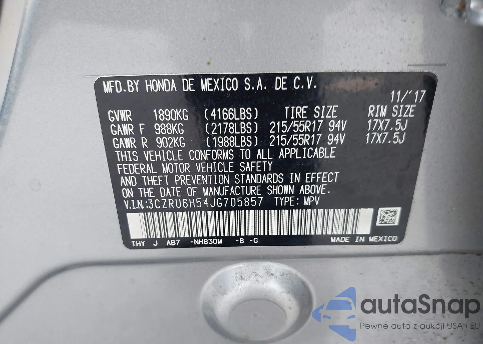 • VIN 3CZRU6H54JG705857