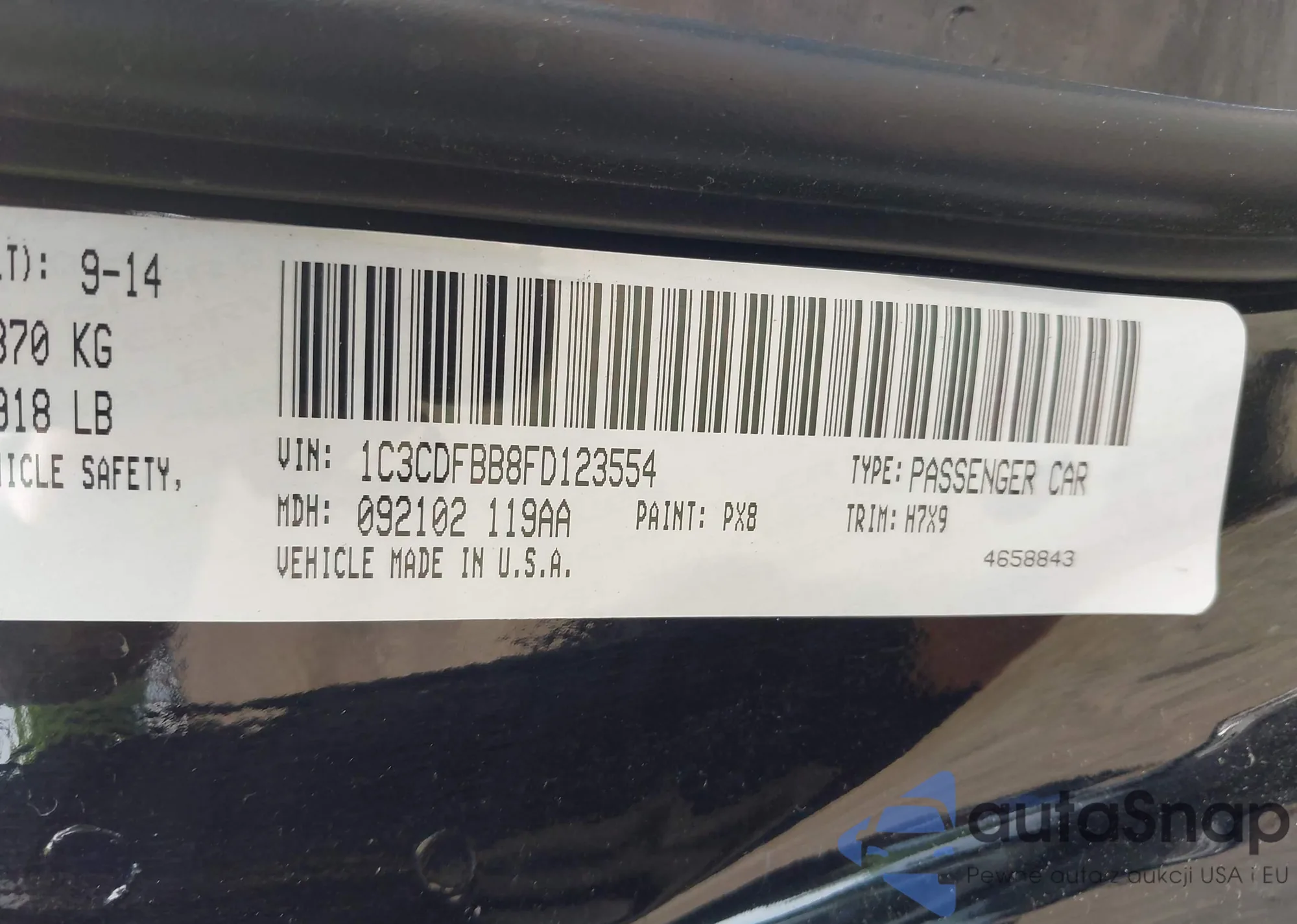 • VIN 1C3CDFBB8FD123554