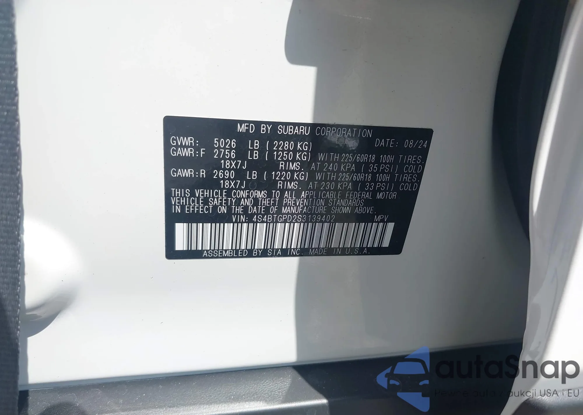 LOT: 42438957 VIN: 4S4BTGPD2S3139402