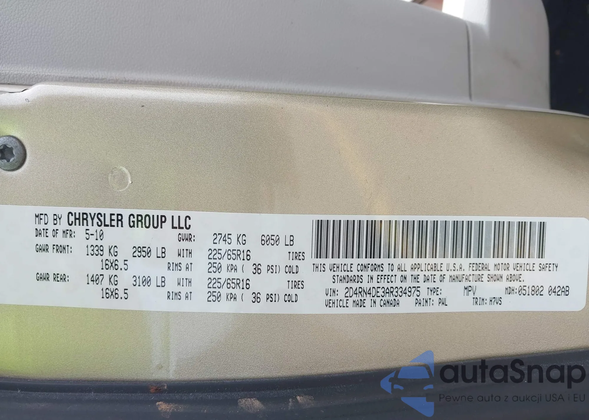 • VIN 1HGCP2F42AA025817